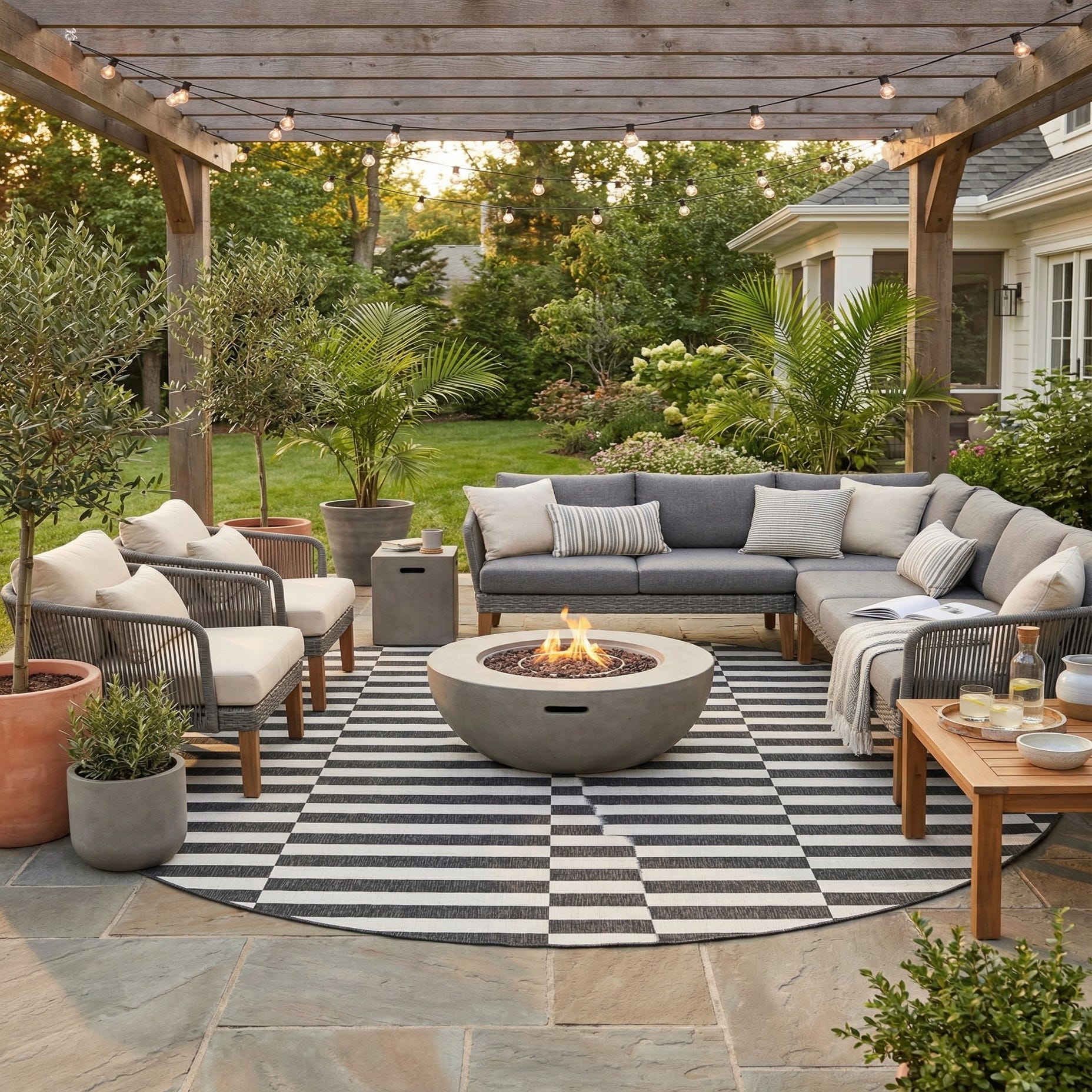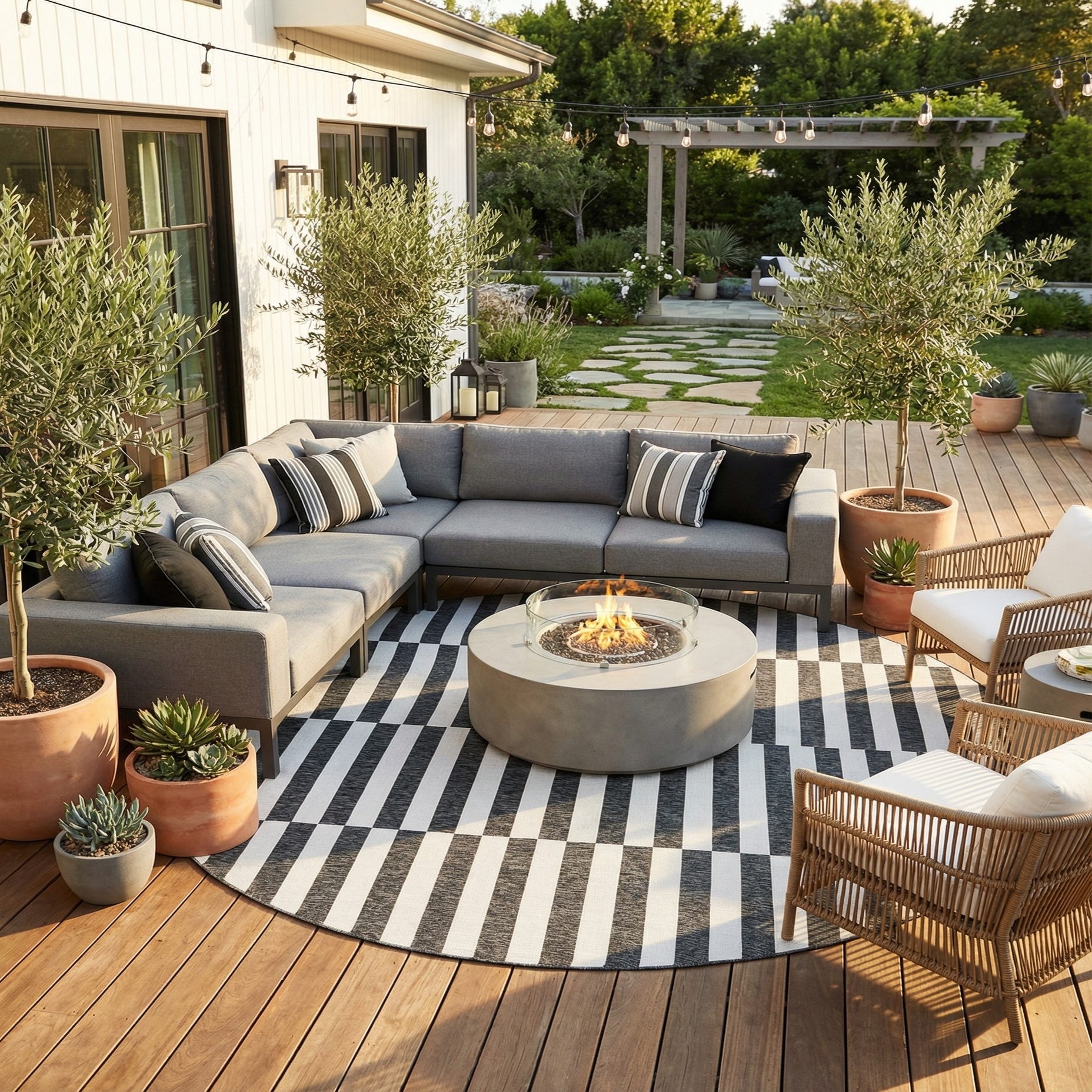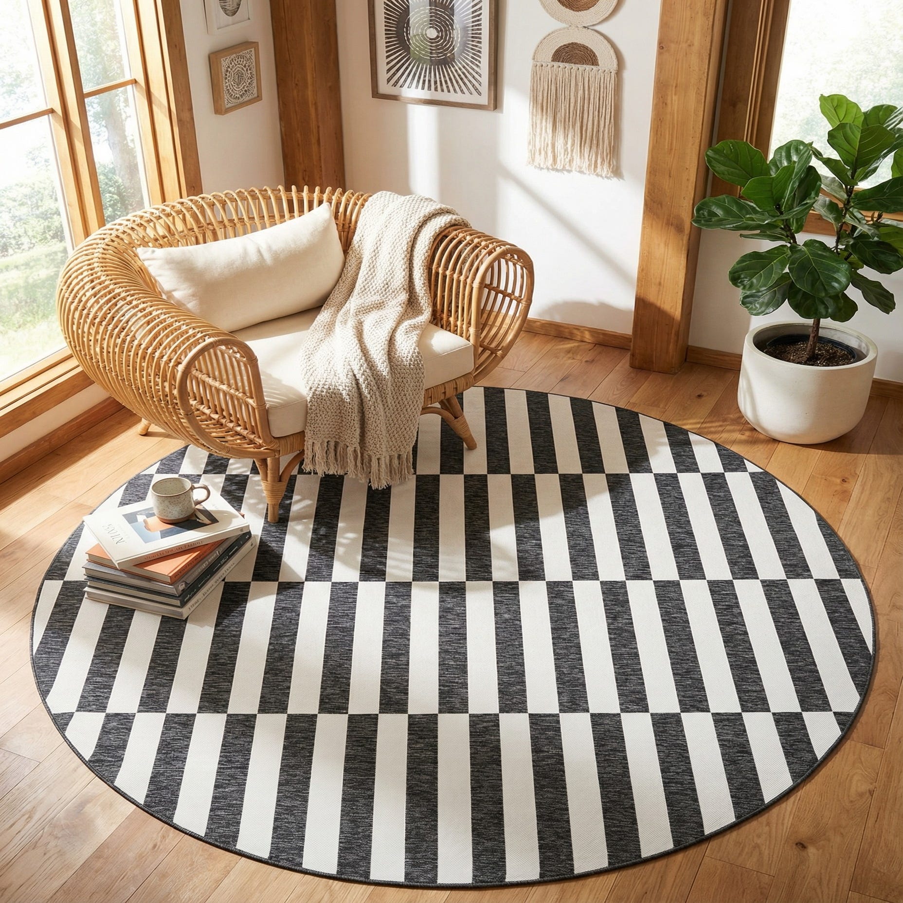 10' 8 x 10' 8 Washable Striped Indoor / Outdoor Round Rug