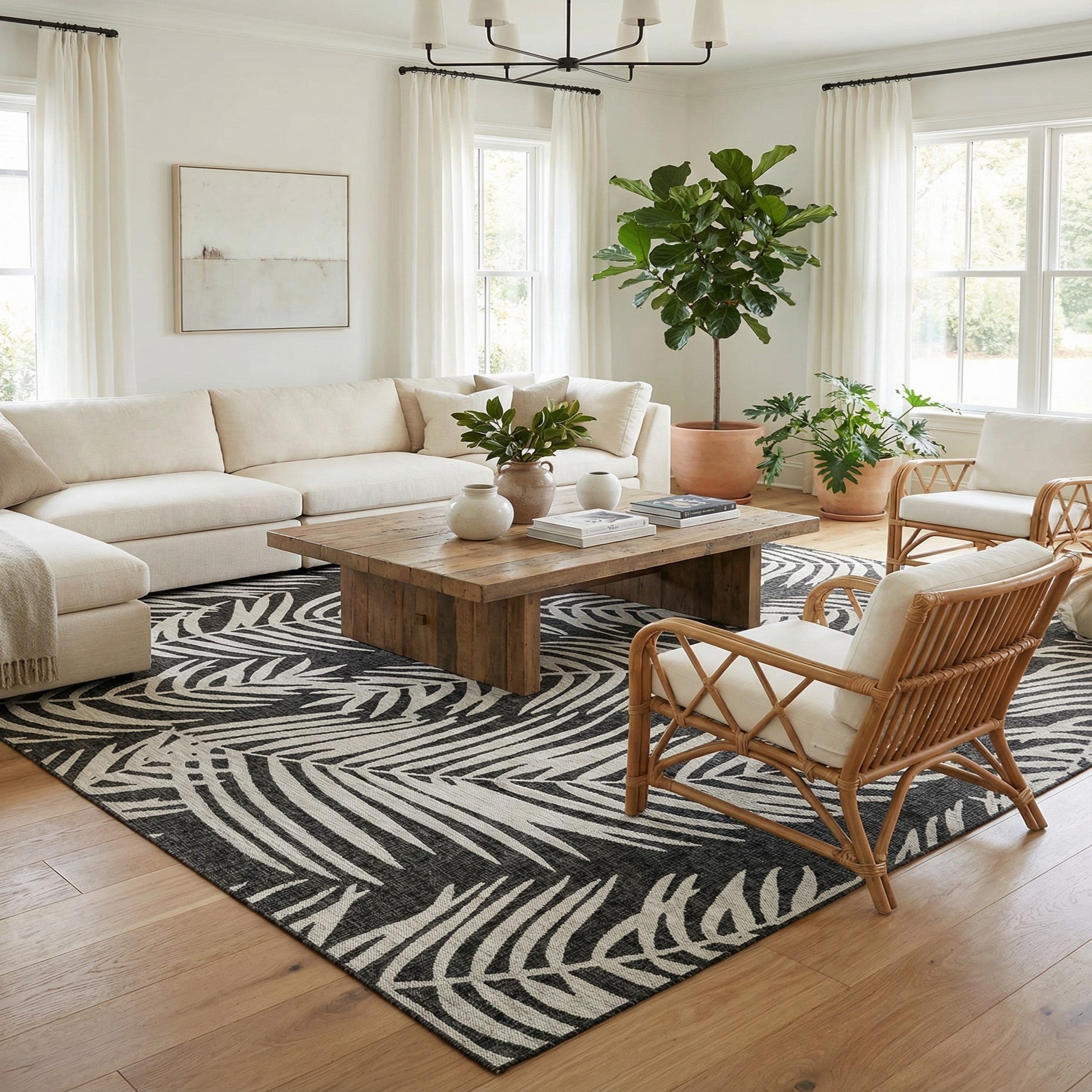 13' x 13' Washable Botanical Indoor / Outdoor Square Rug