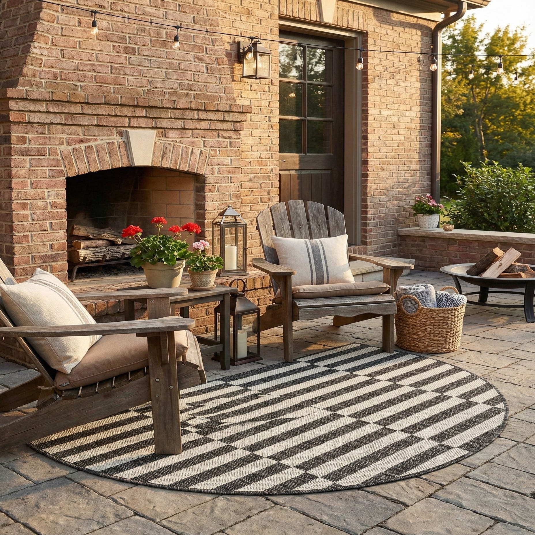 2' 2 x 3' 7 Washable Striped Indoor / Outdoor Hearth Rug