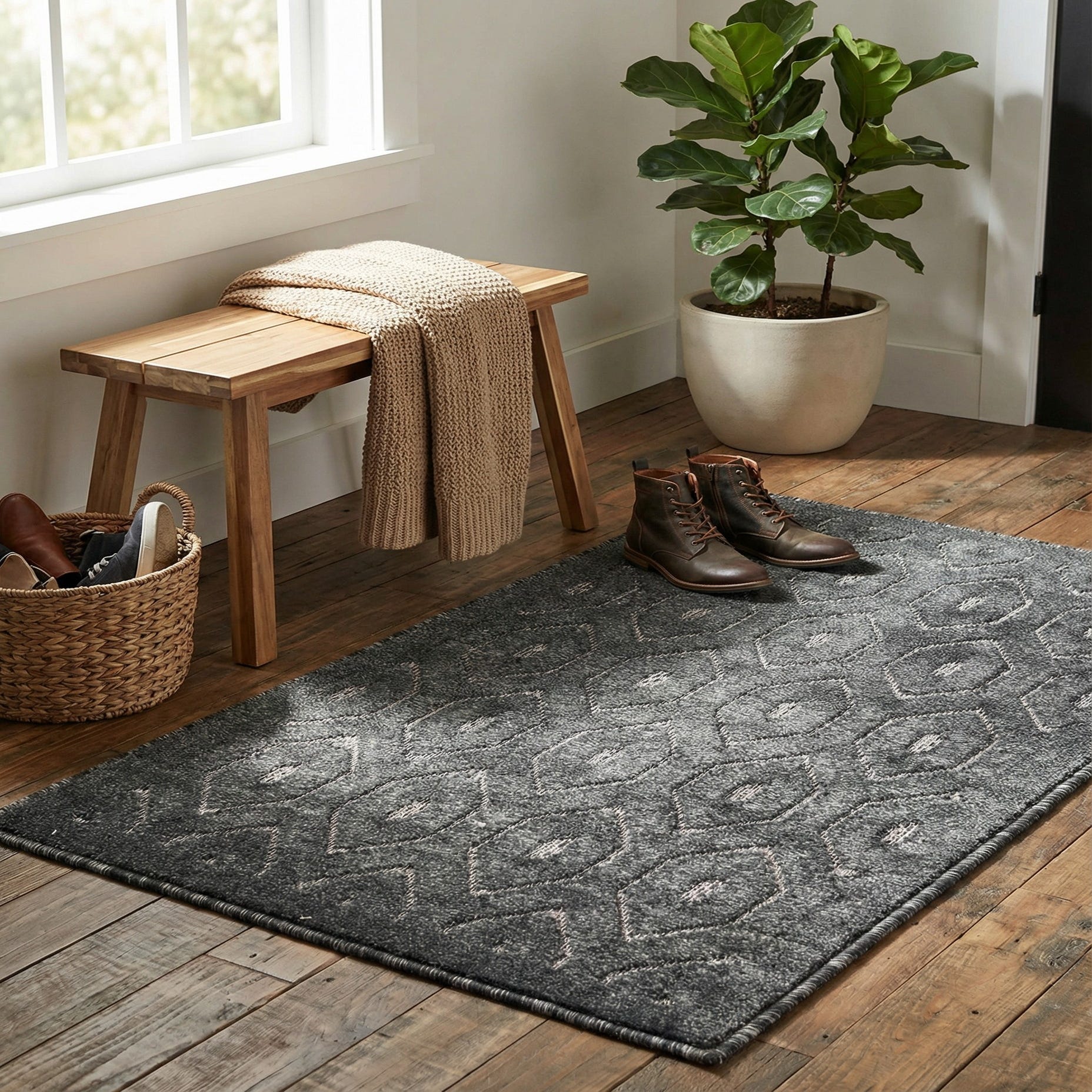 2' x 3' Washable Trellis Textured Indoor / Outdoor Rug