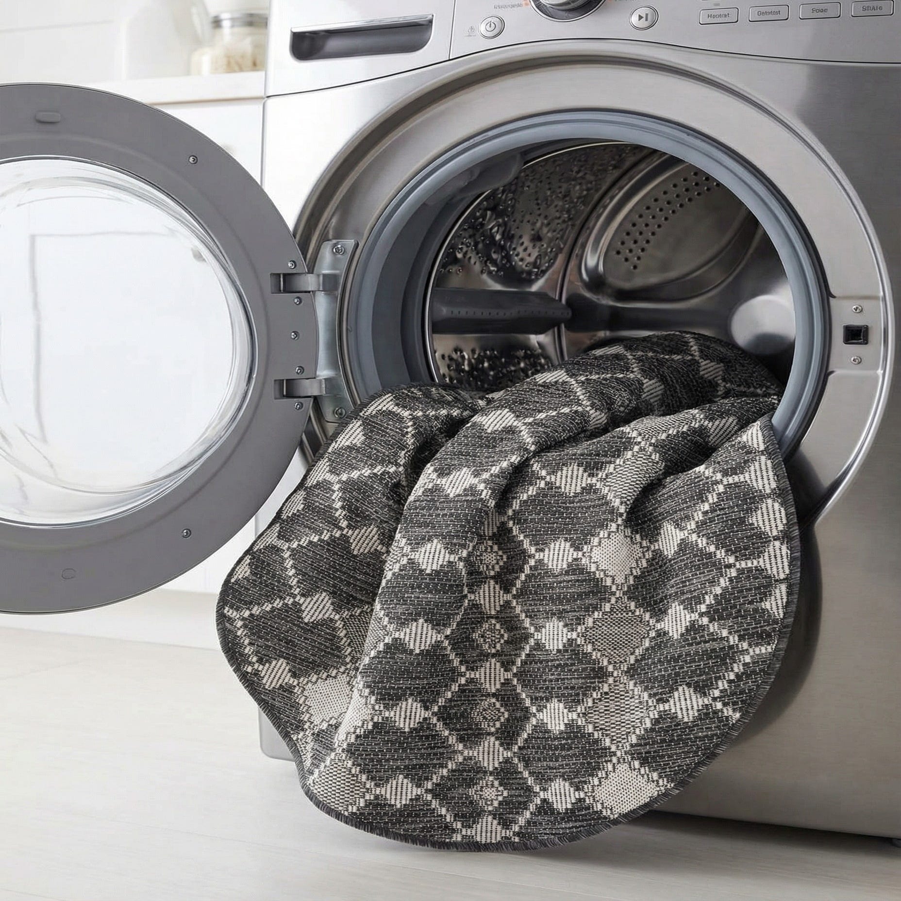3' x 3' Washable Trellis Indoor / Outdoor Round Rug