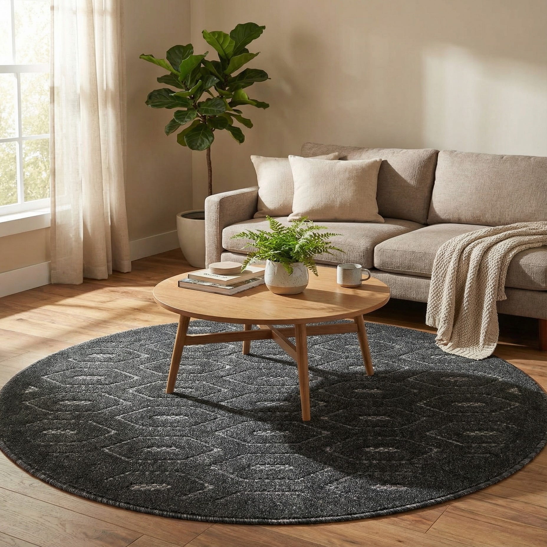 3' x 3' Washable Trellis Textured Indoor / Outdoor Round Rug