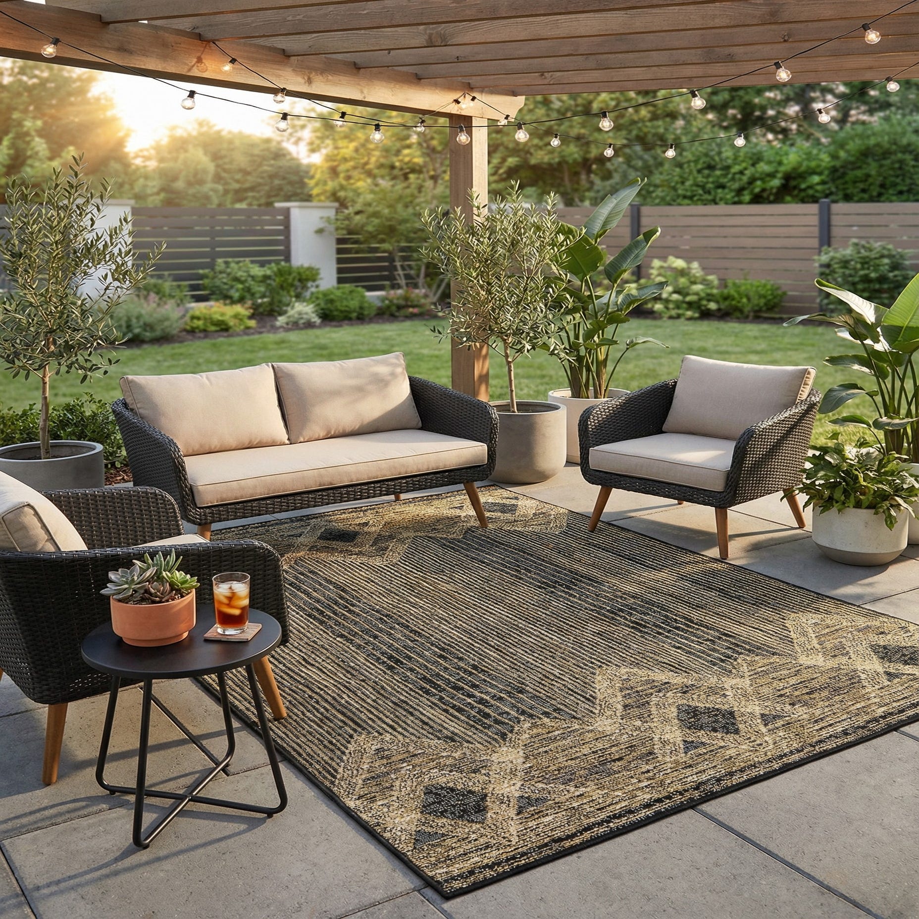3' 3 x 5' 3 Washable Modern Indoor / Outdoor Rug