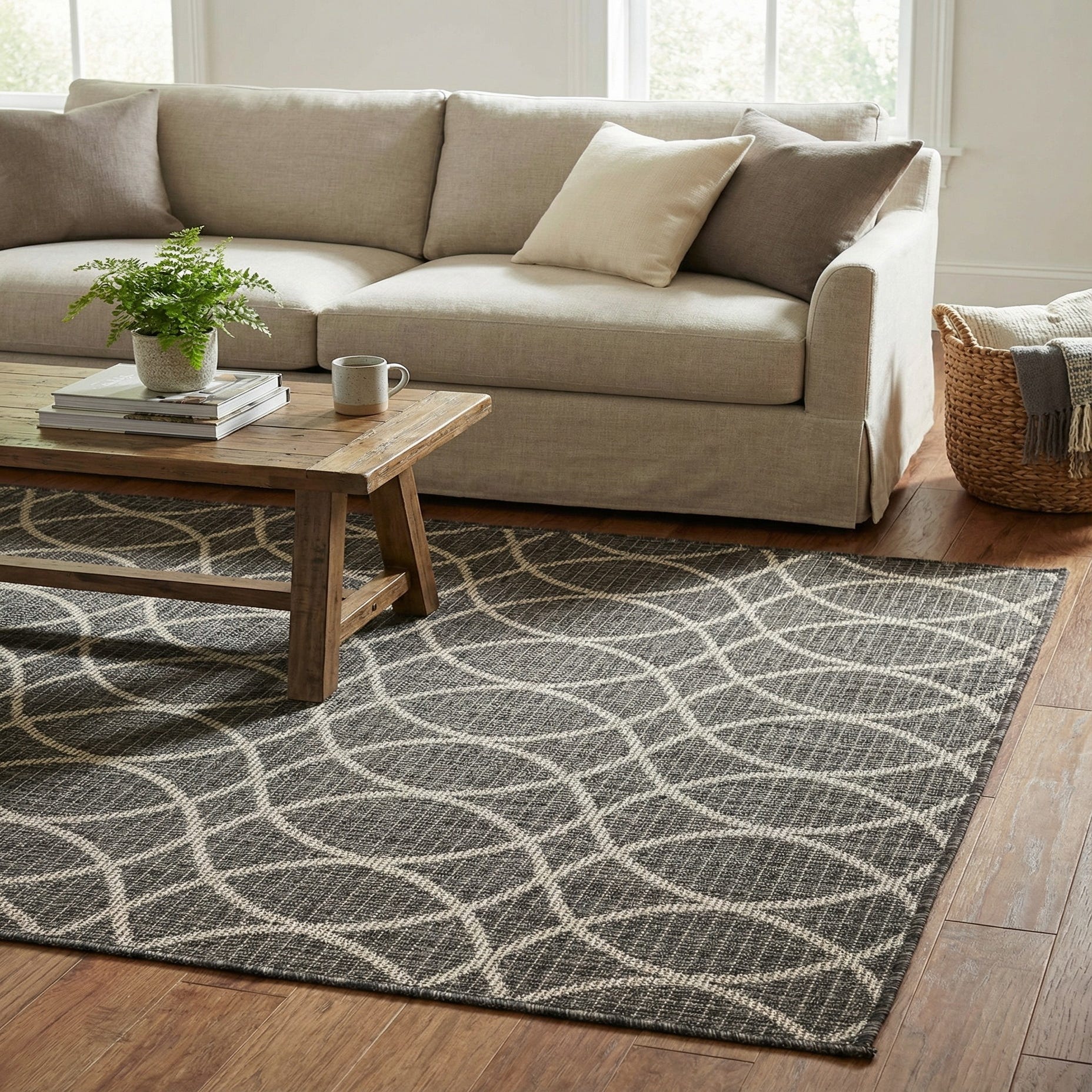 Primary color is Charcoal. Colors in this rug include: Charcoal, Ivory.