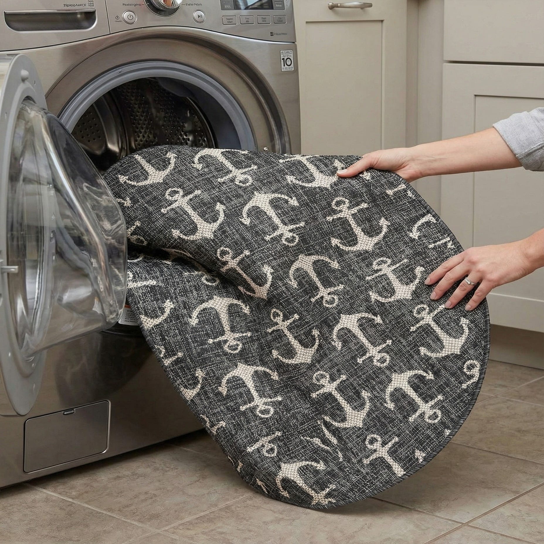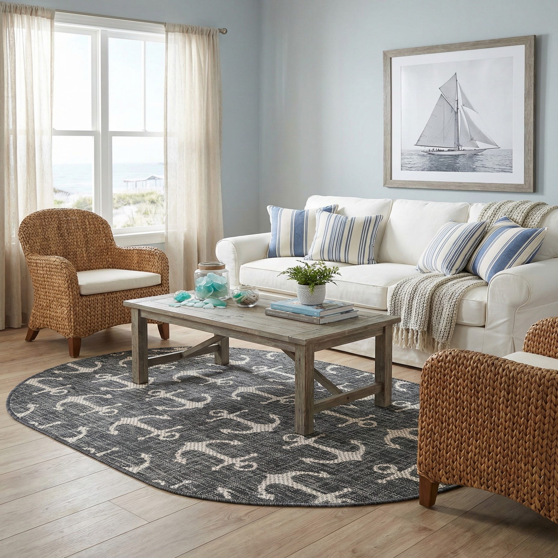 3' x 5' 3 Washable Coastal Indoor / Outdoor Oval Rug