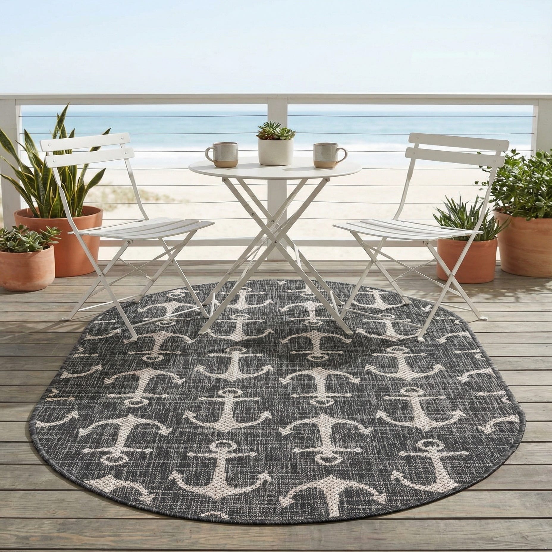 3' x 5' 3 Washable Coastal Indoor / Outdoor Oval Rug