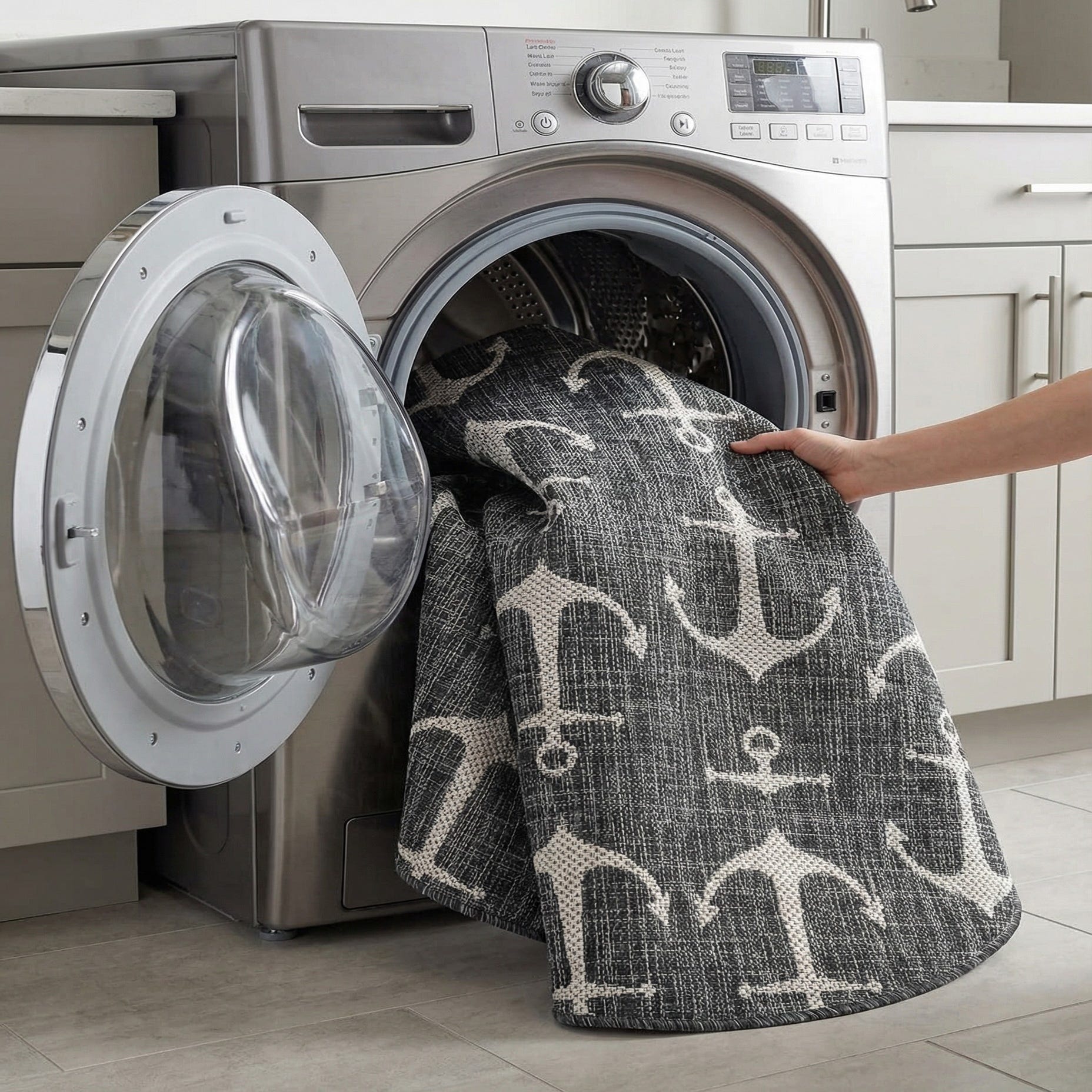 Detail image of 4' x 4'  Washable Coastal Indoor / Outdoor Round Rug