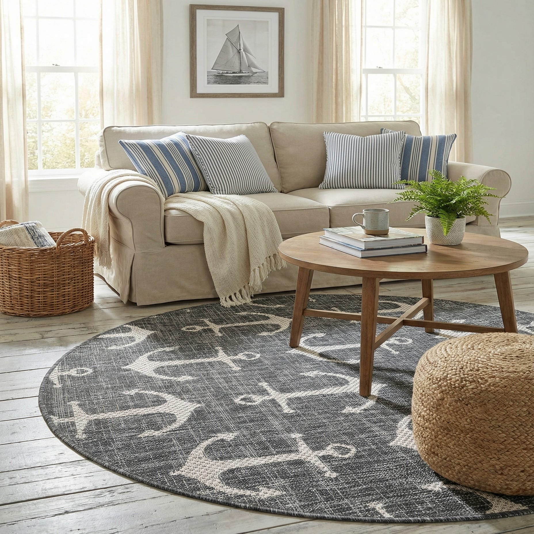 4' x 4' Washable Coastal Indoor / Outdoor Round Rug