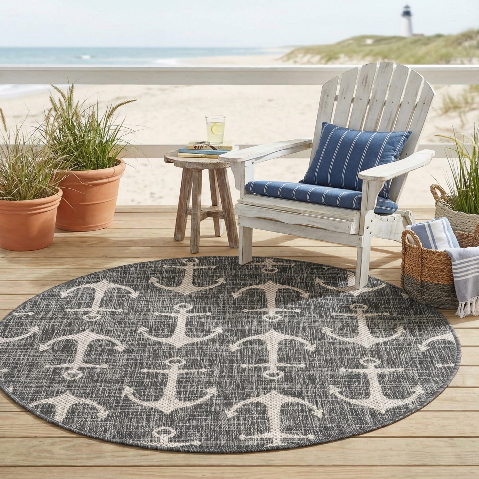 4' x 4' Washable Coastal Indoor / Outdoor Round Rug