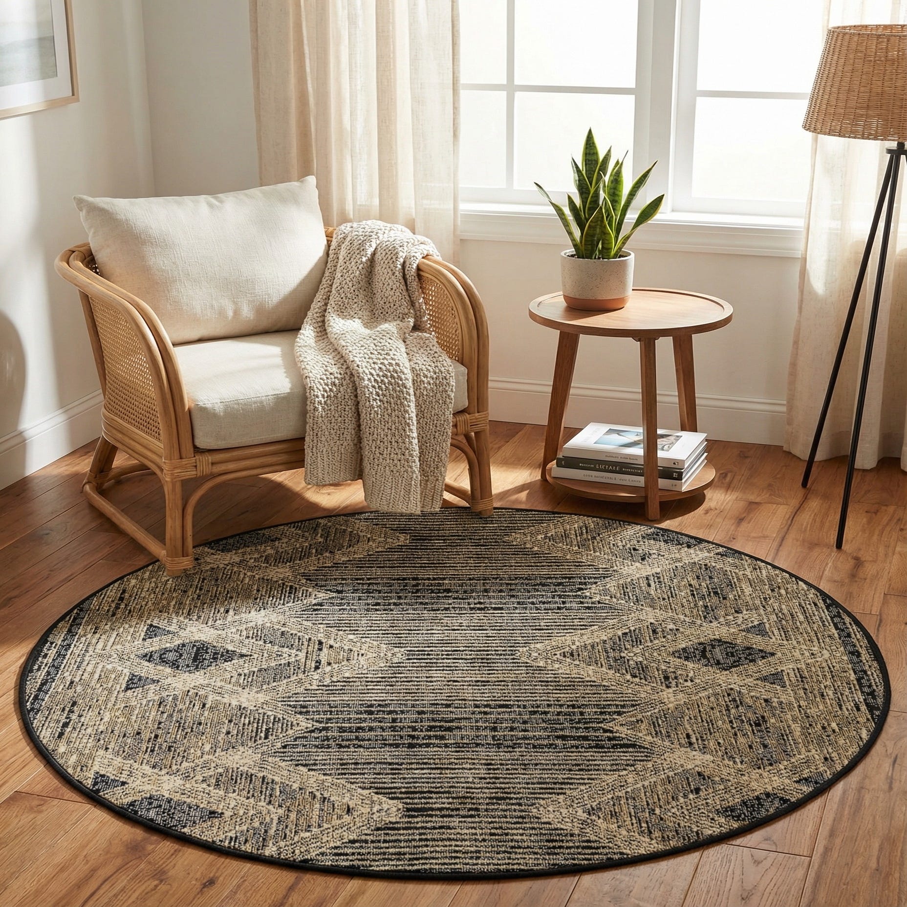 4' x 4' Washable Modern Indoor / Outdoor Round Rug
