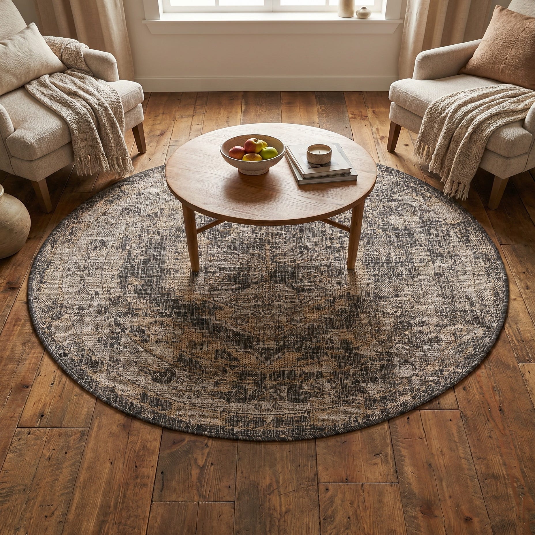4' x 4' Easy-Clean Traditional Indoor / Outdoor Round Rug