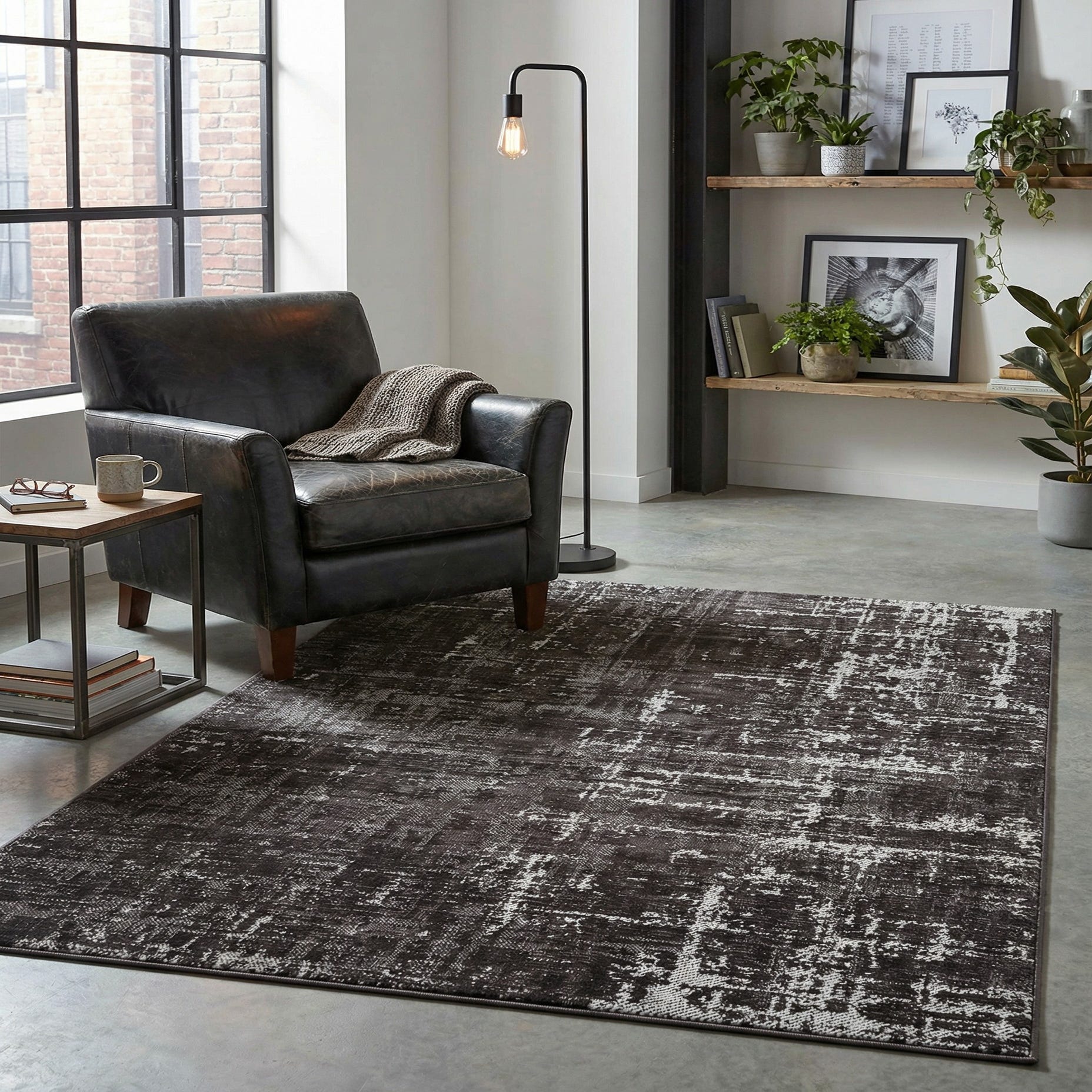 Primary color is Charcoal. Colors in this rug include: Charcoal, Ivory, Brown.