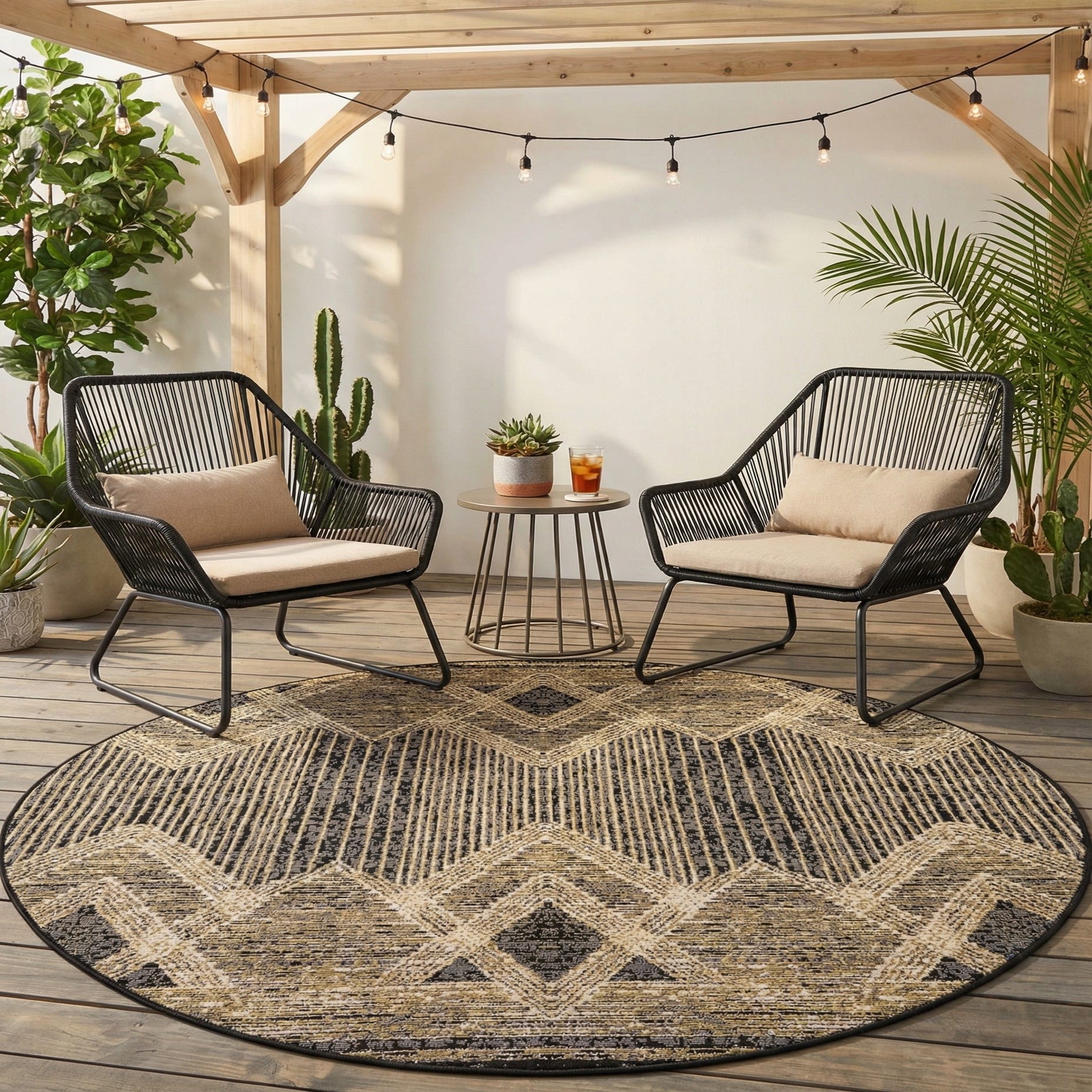 5' x 5' Washable Modern Indoor / Outdoor Round Rug