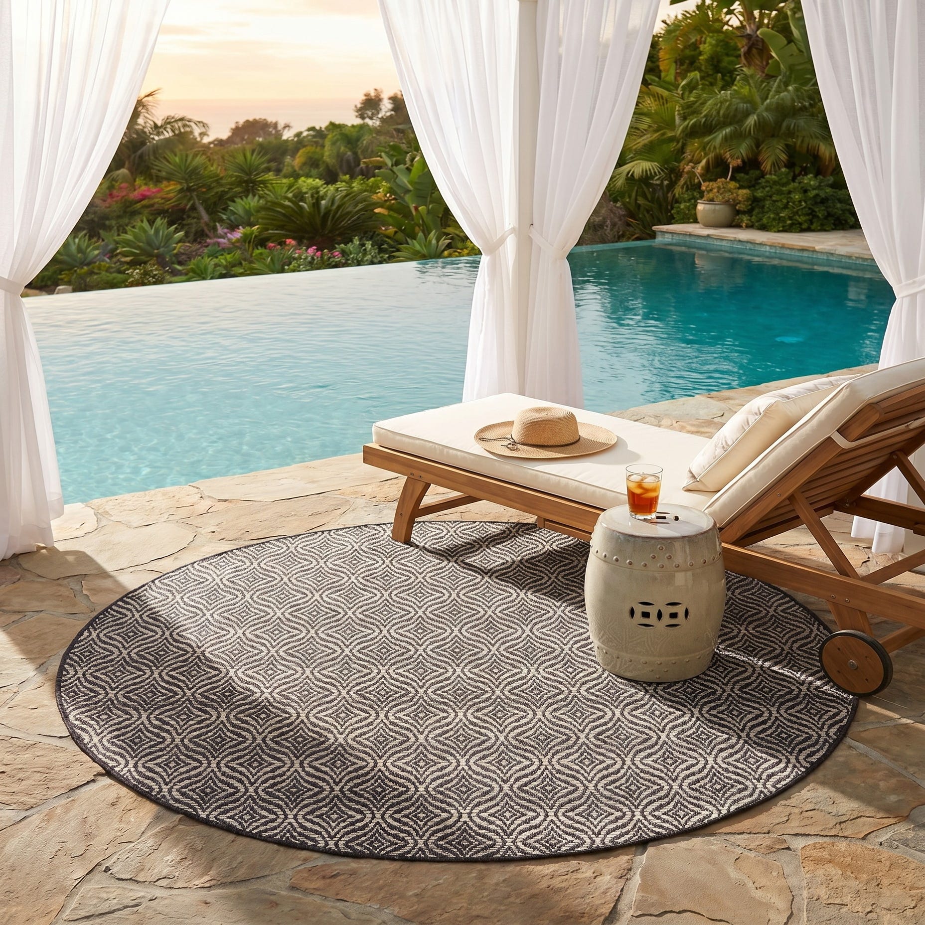 5' 3 x 5' 3 Easy-Clean Trellis Indoor / Outdoor Round Rug
