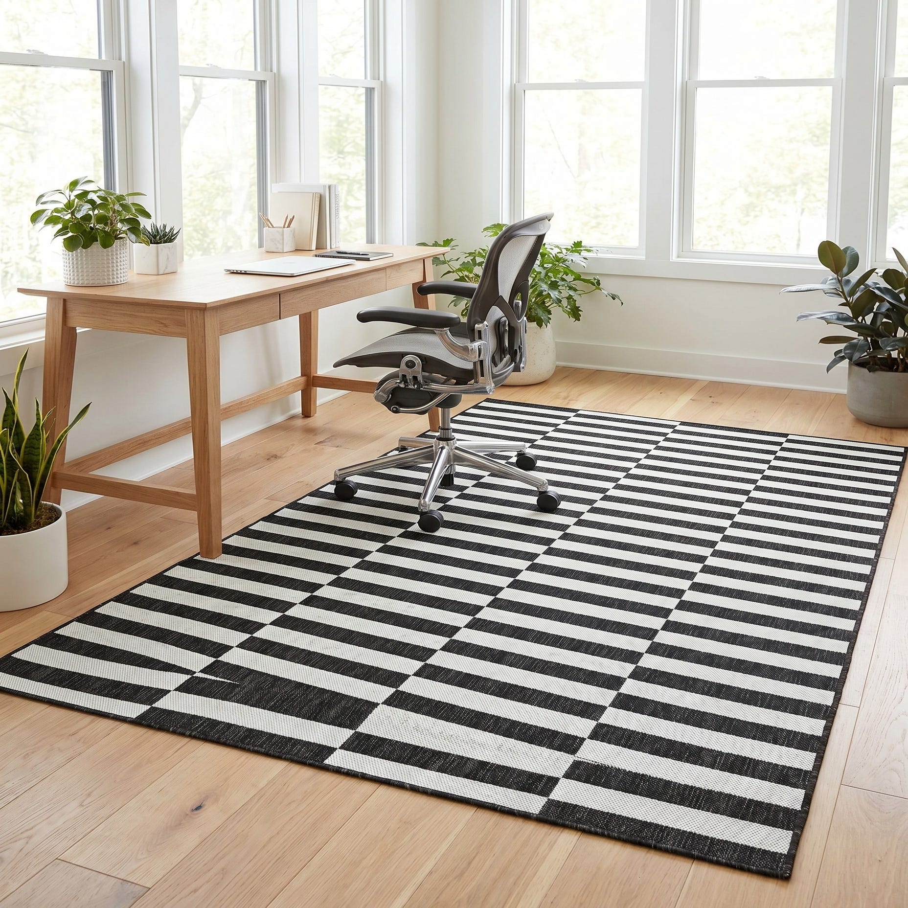 5' 3 x 8' Easy-Clean Striped Indoor / Outdoor Rug