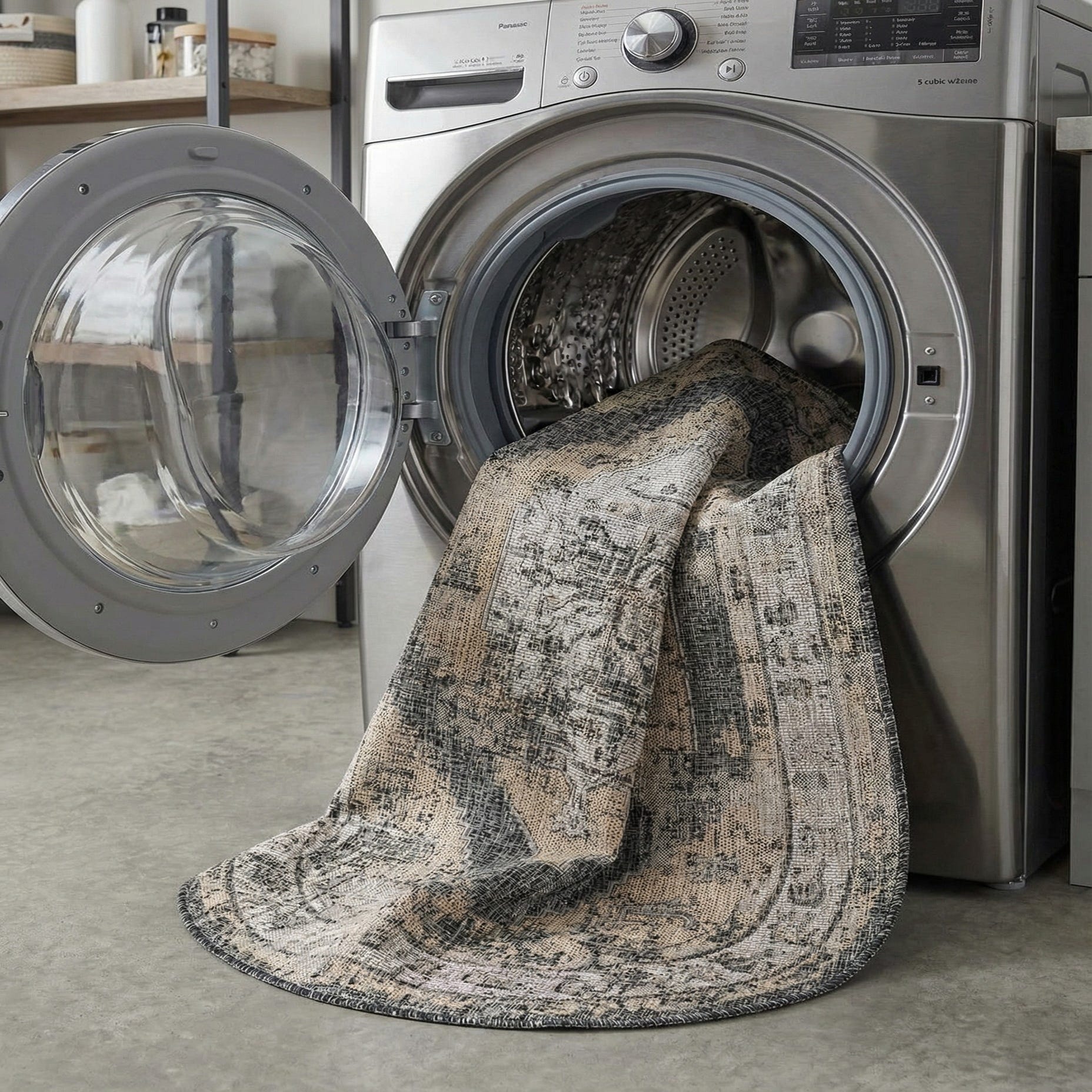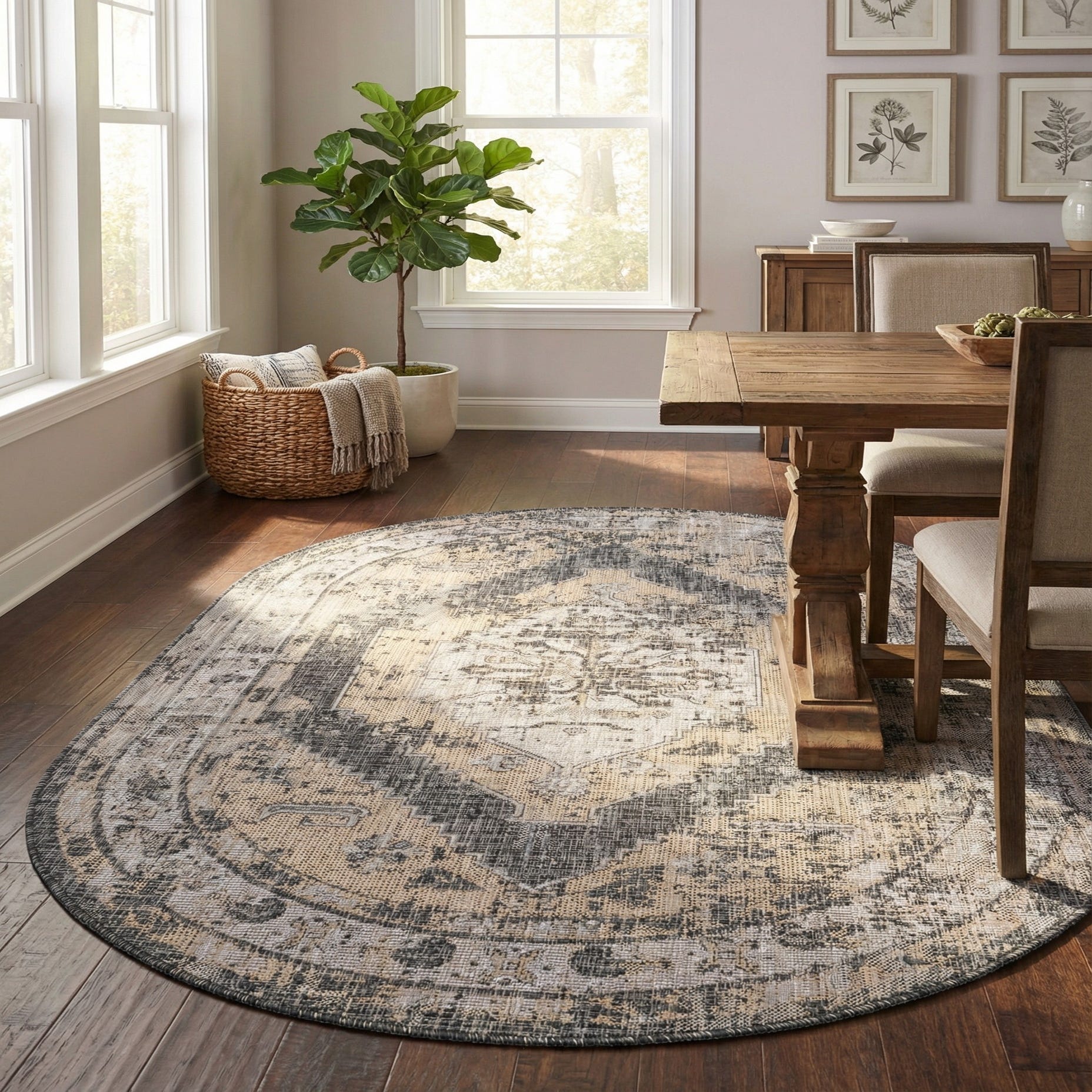 5' 3 x 8' Washable Traditional Indoor / Outdoor Oval Rug