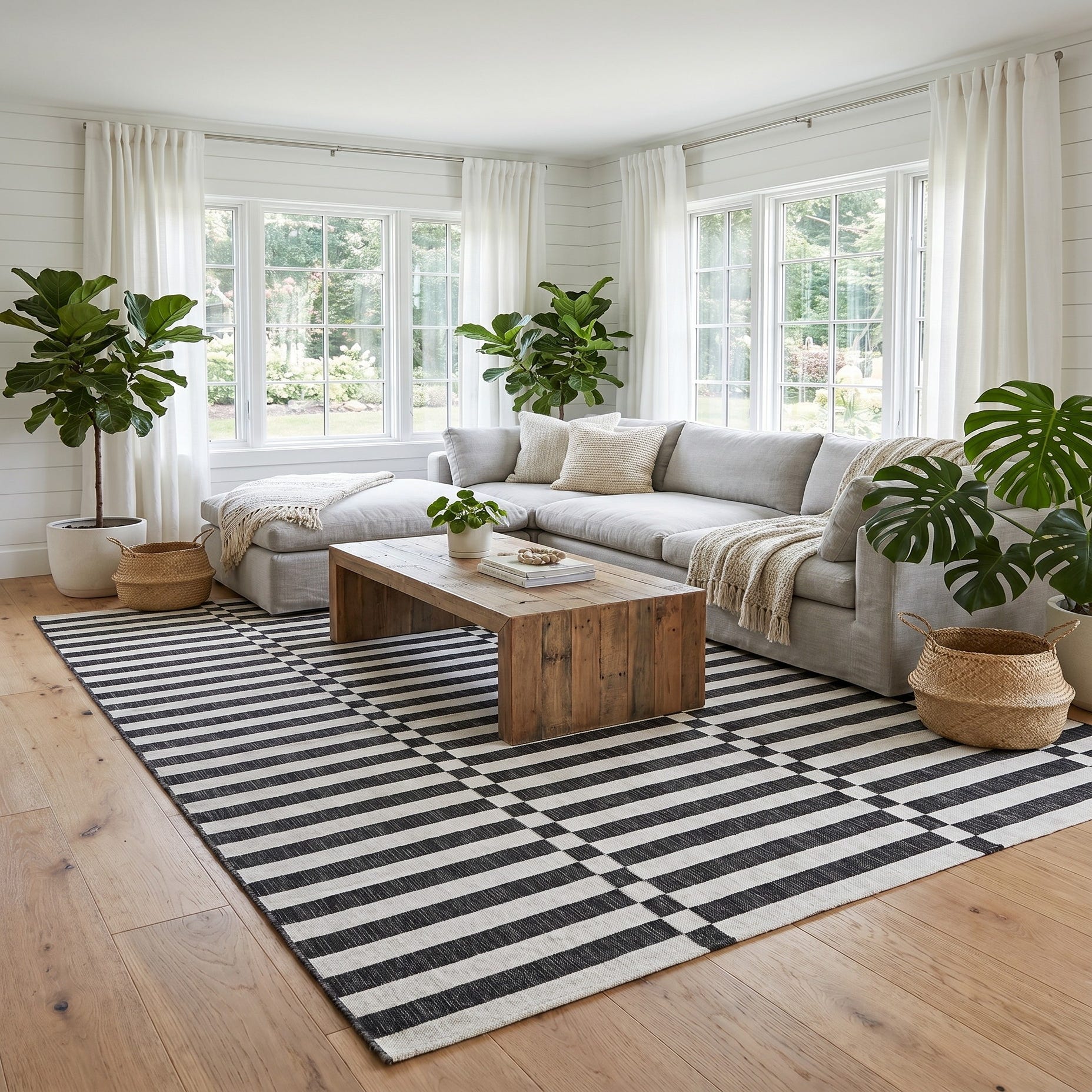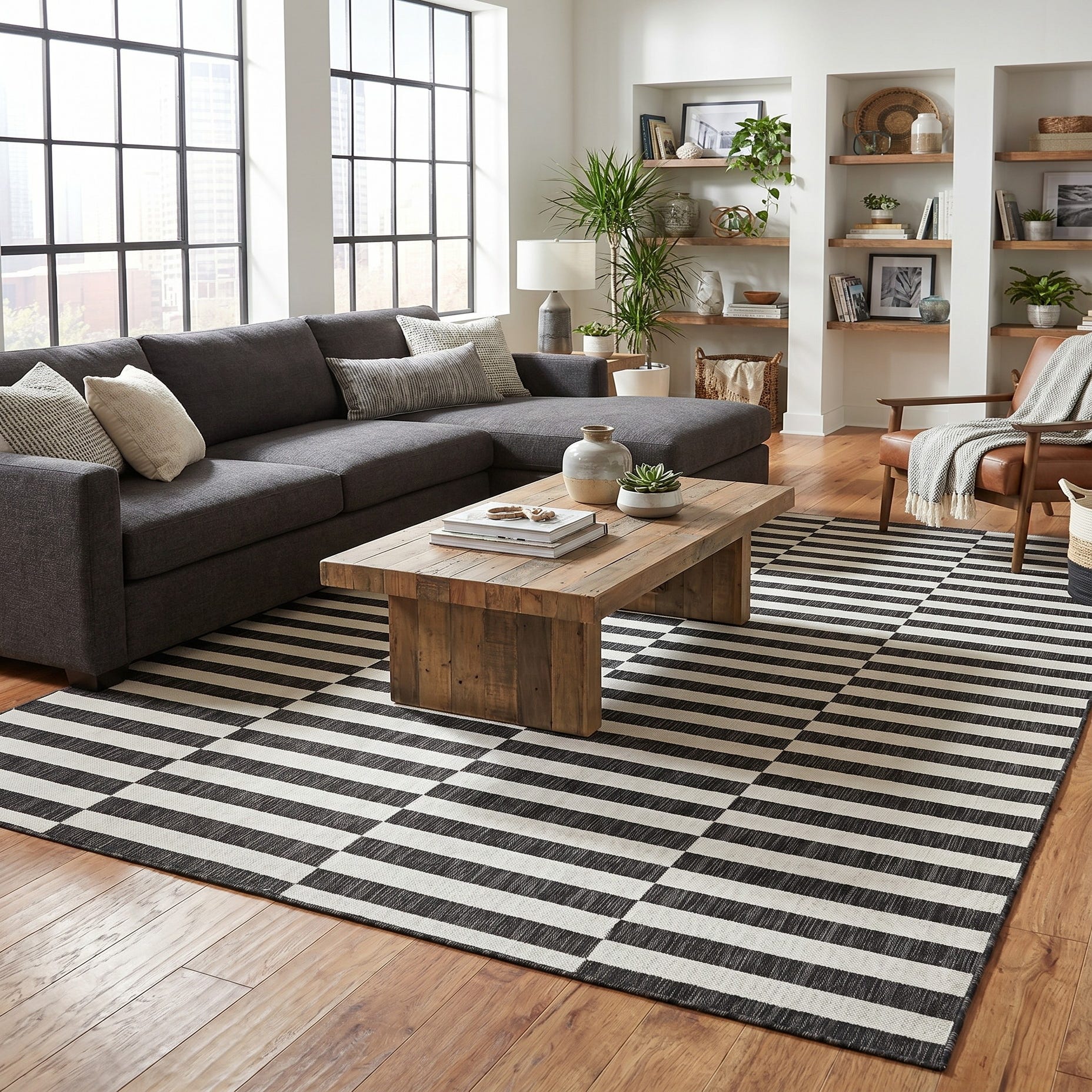 7' x 10' Easy-Clean Striped Indoor / Outdoor Rug