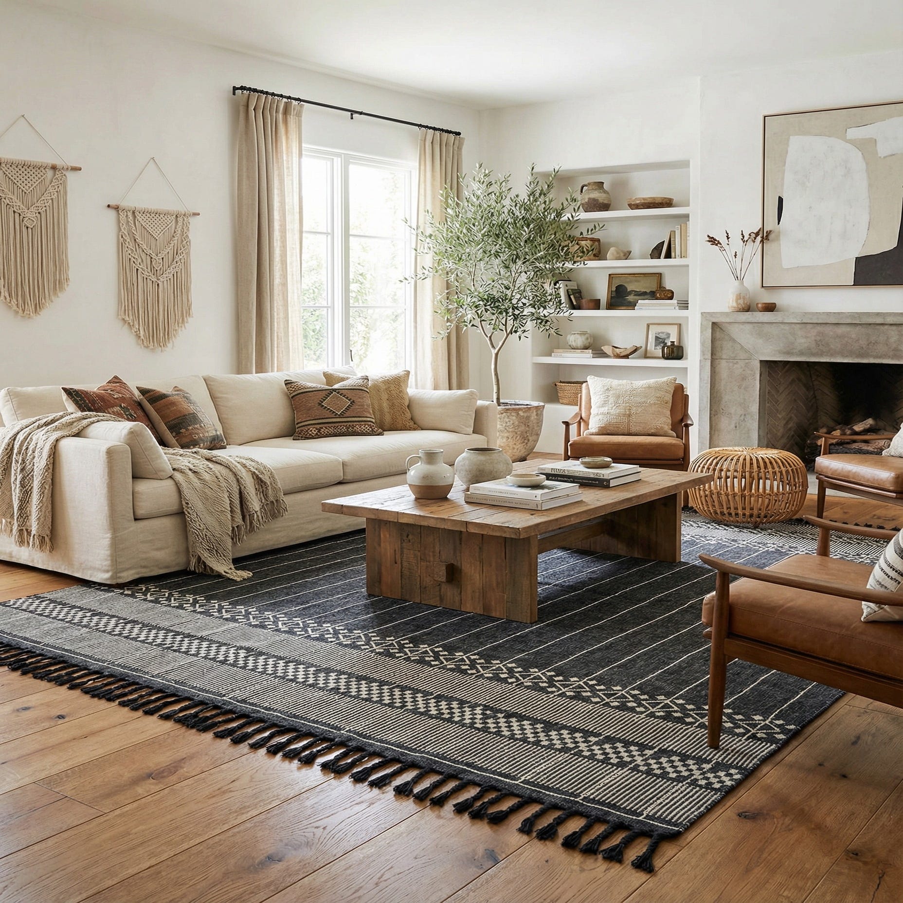 Primary color is Charcoal Black. Colors in this rug include: Charcoal Black, Ivory.