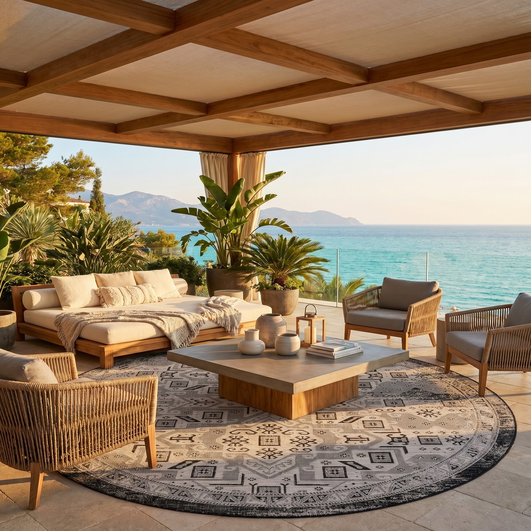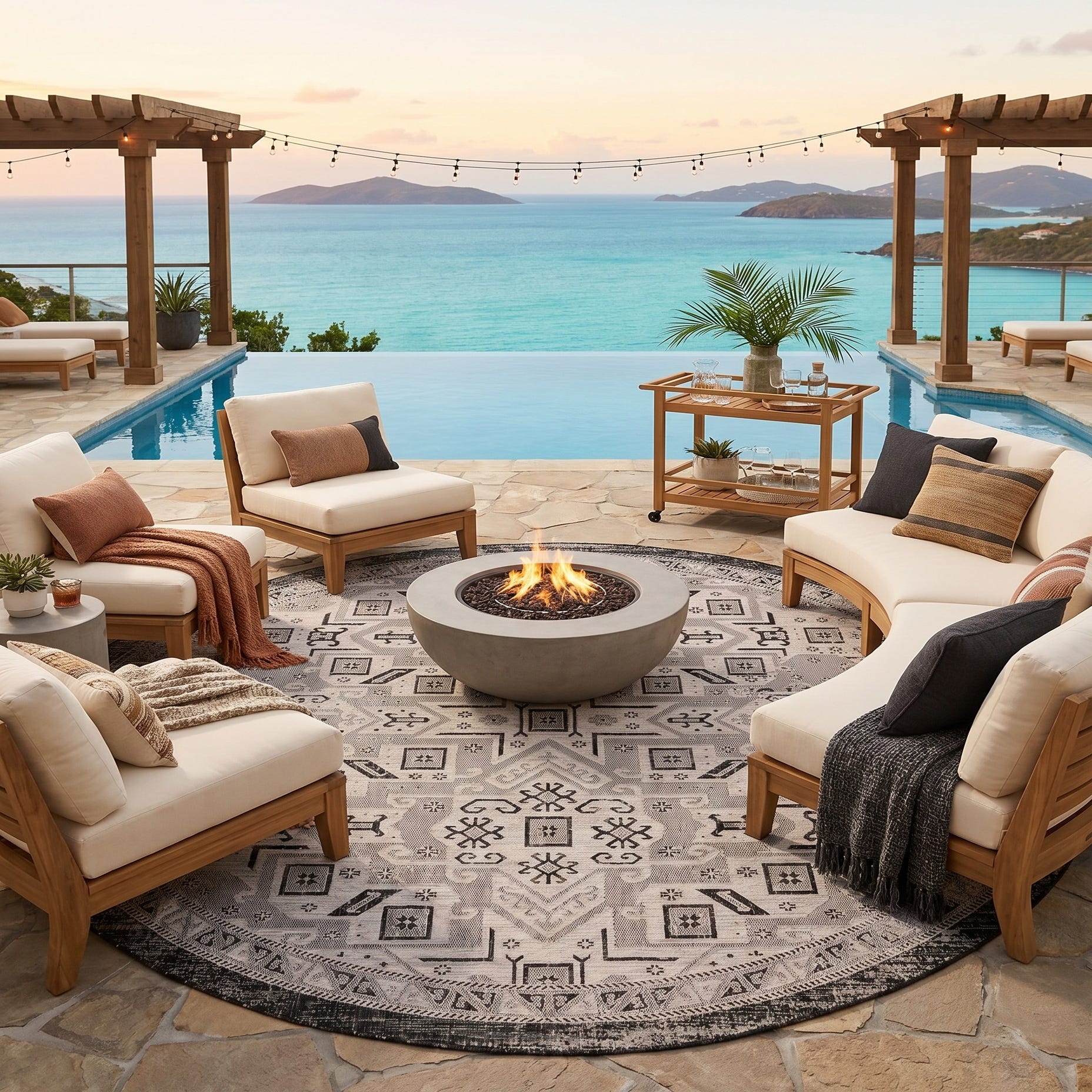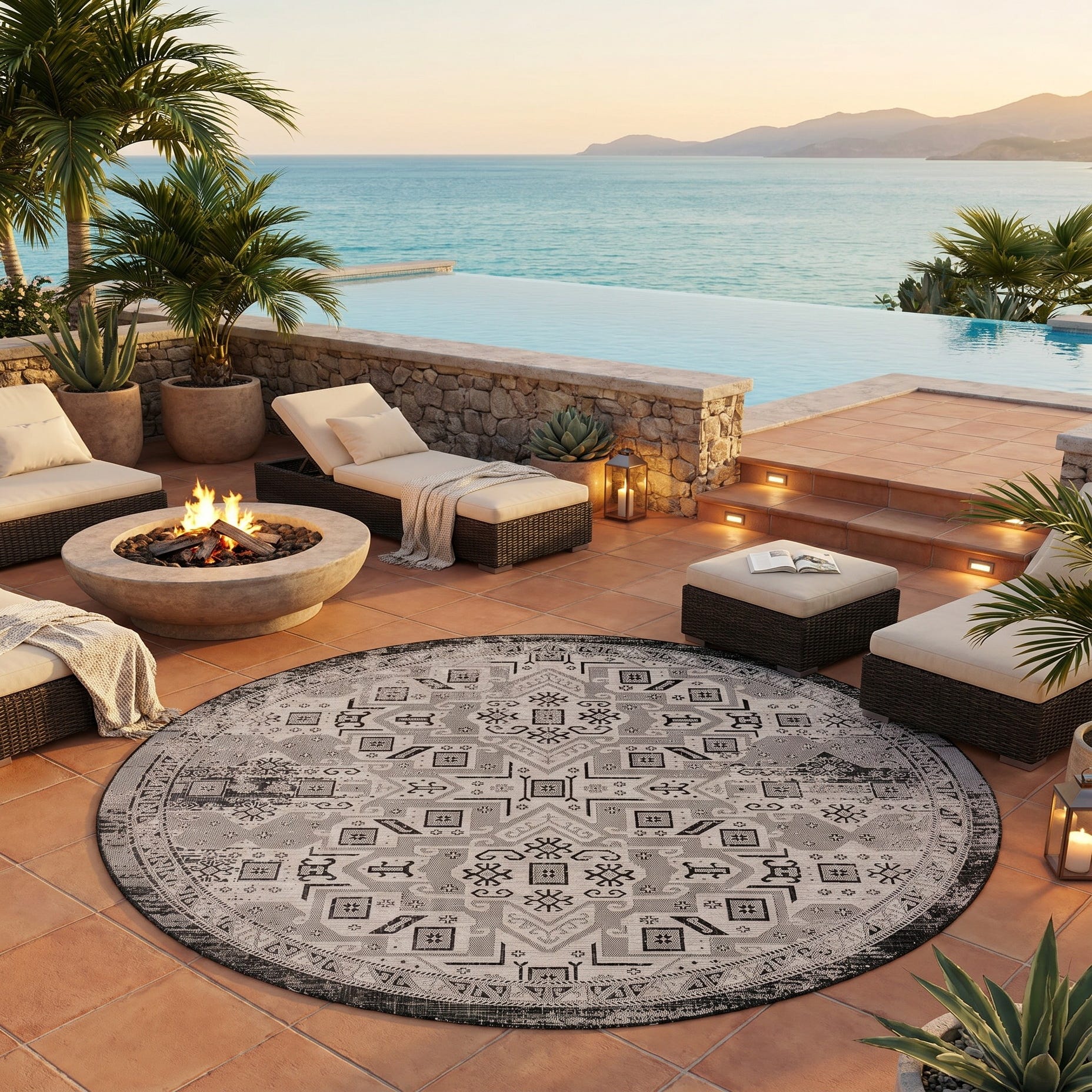 10' x 10' Easy-Clean Aztec Indoor / Outdoor Round Rug