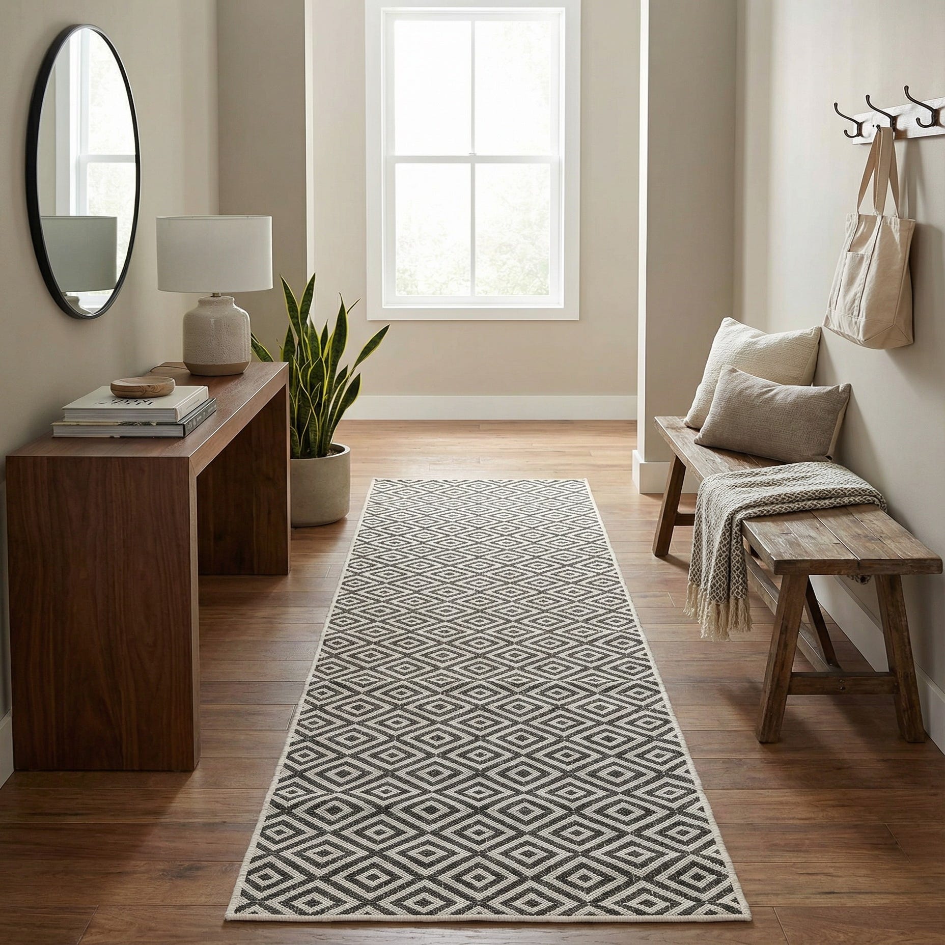 Primary color is Charcoal Gray. Colors in this rug include: Charcoal Gray, Ivory.