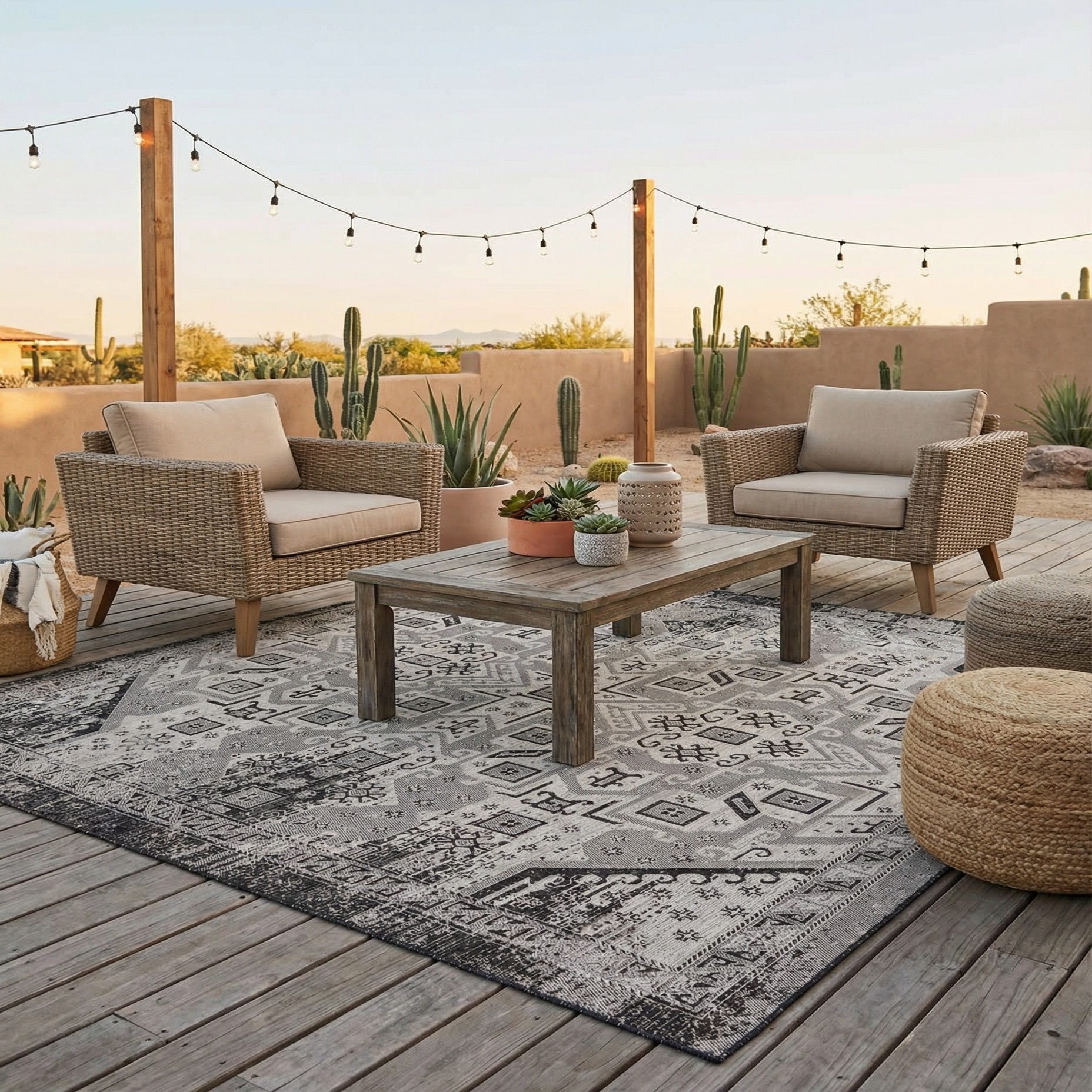 10' x 10' Washable Aztec Indoor / Outdoor Square Rug