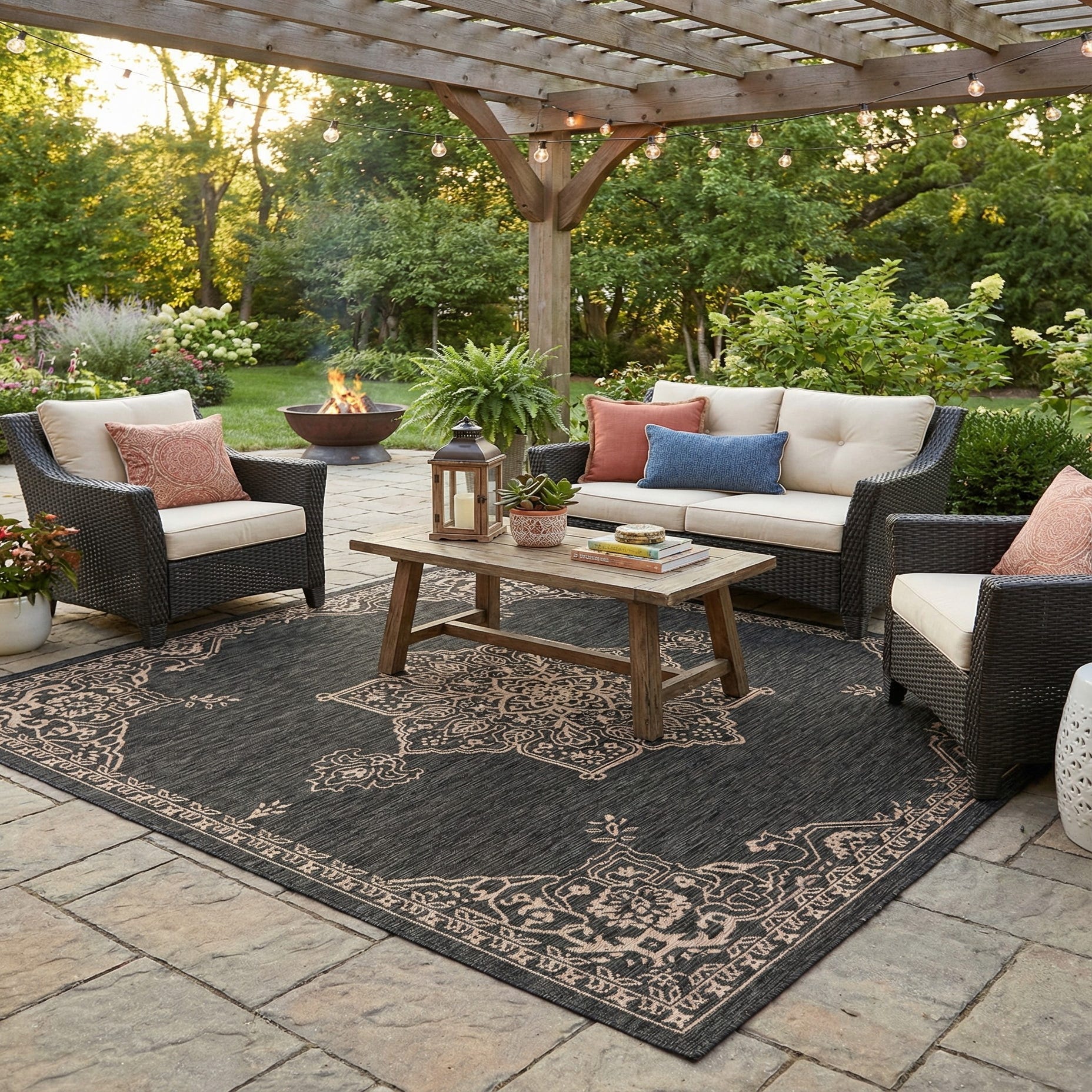 10' x 10' Washable Traditional Indoor / Outdoor Square Rug
