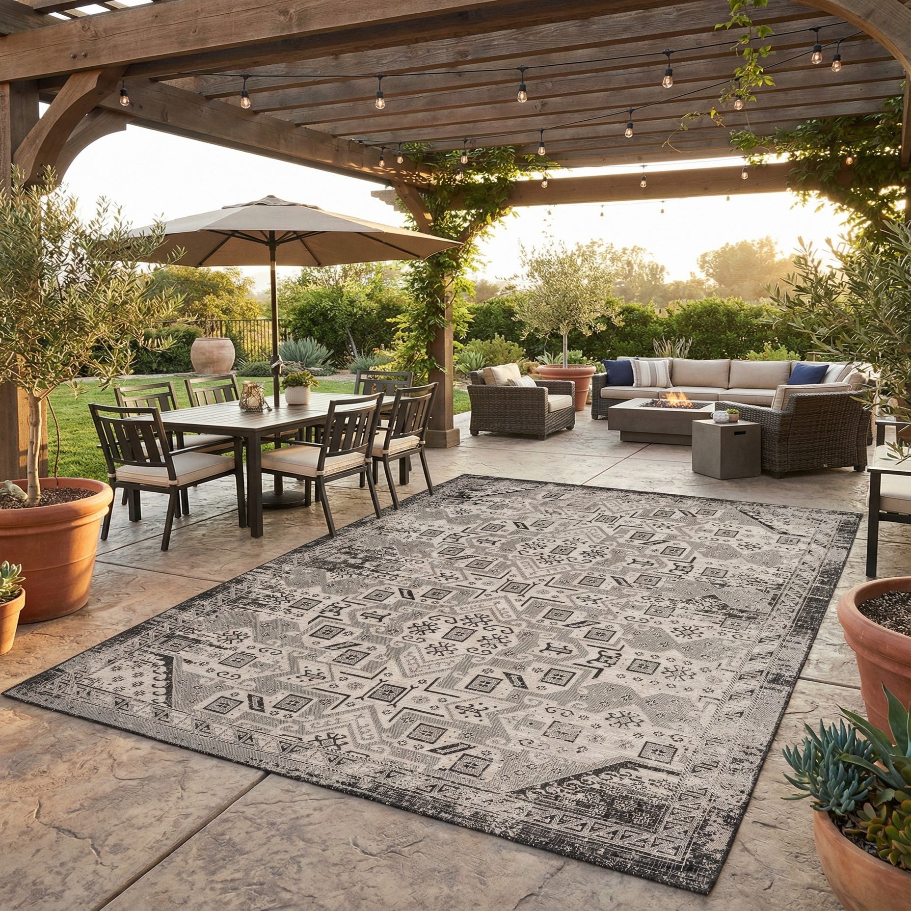 Primary image 10' x 13'  Washable Aztec Indoor / Outdoor Rug