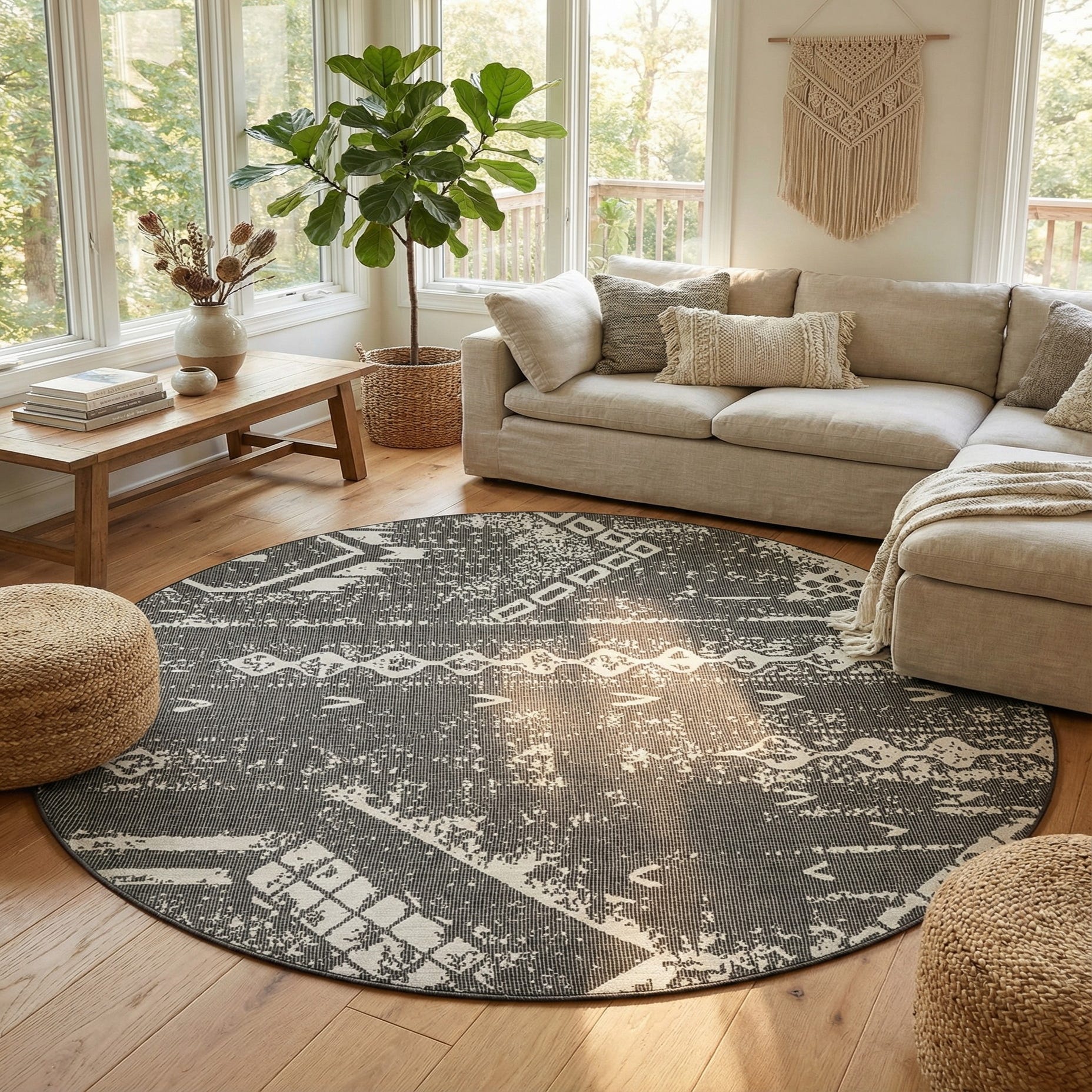 10' 8 x 10' 8 Washable Bohemian Indoor / Outdoor Round Rug