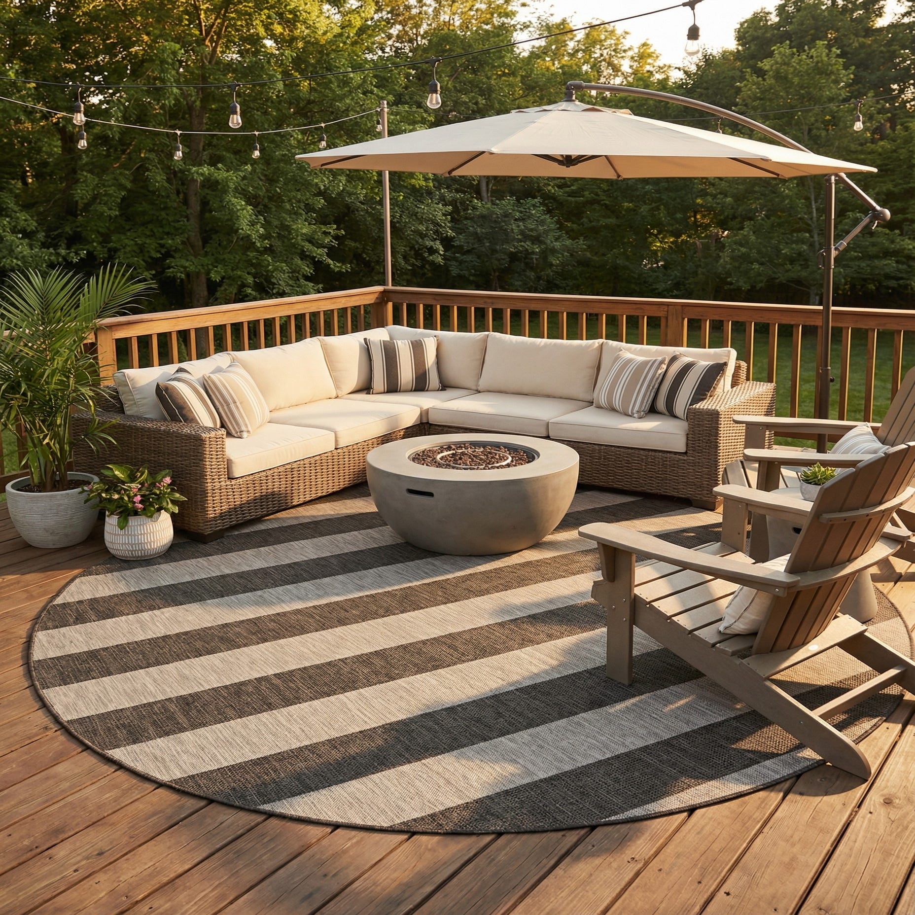 10' 8 x 10' 8 Washable Striped Indoor / Outdoor Round Rug