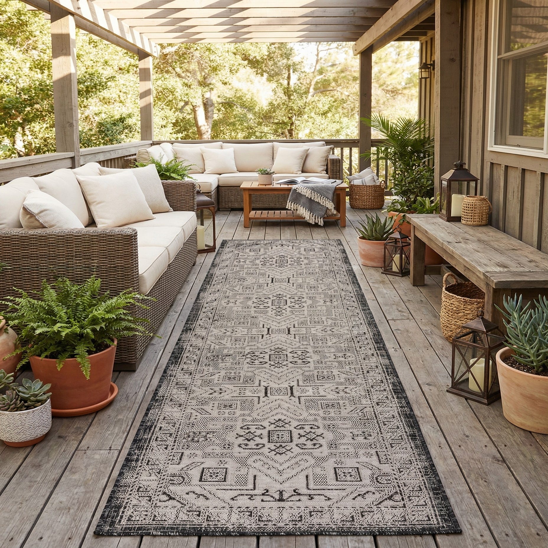 2' 7 x 12' Washable Aztec Indoor / Outdoor Runner Rug