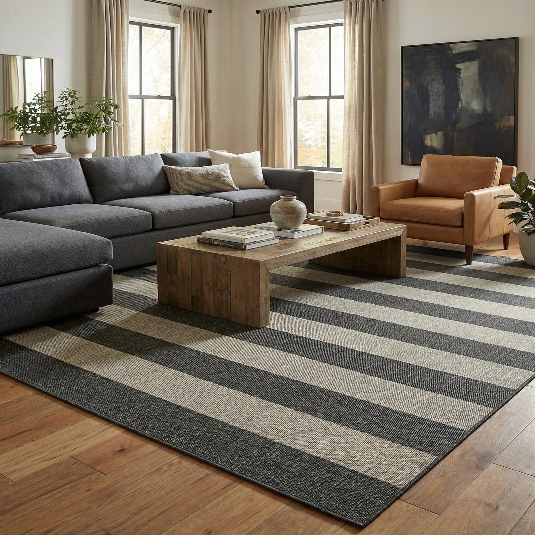 12' x 12' Washable Striped Indoor / Outdoor Square Rug