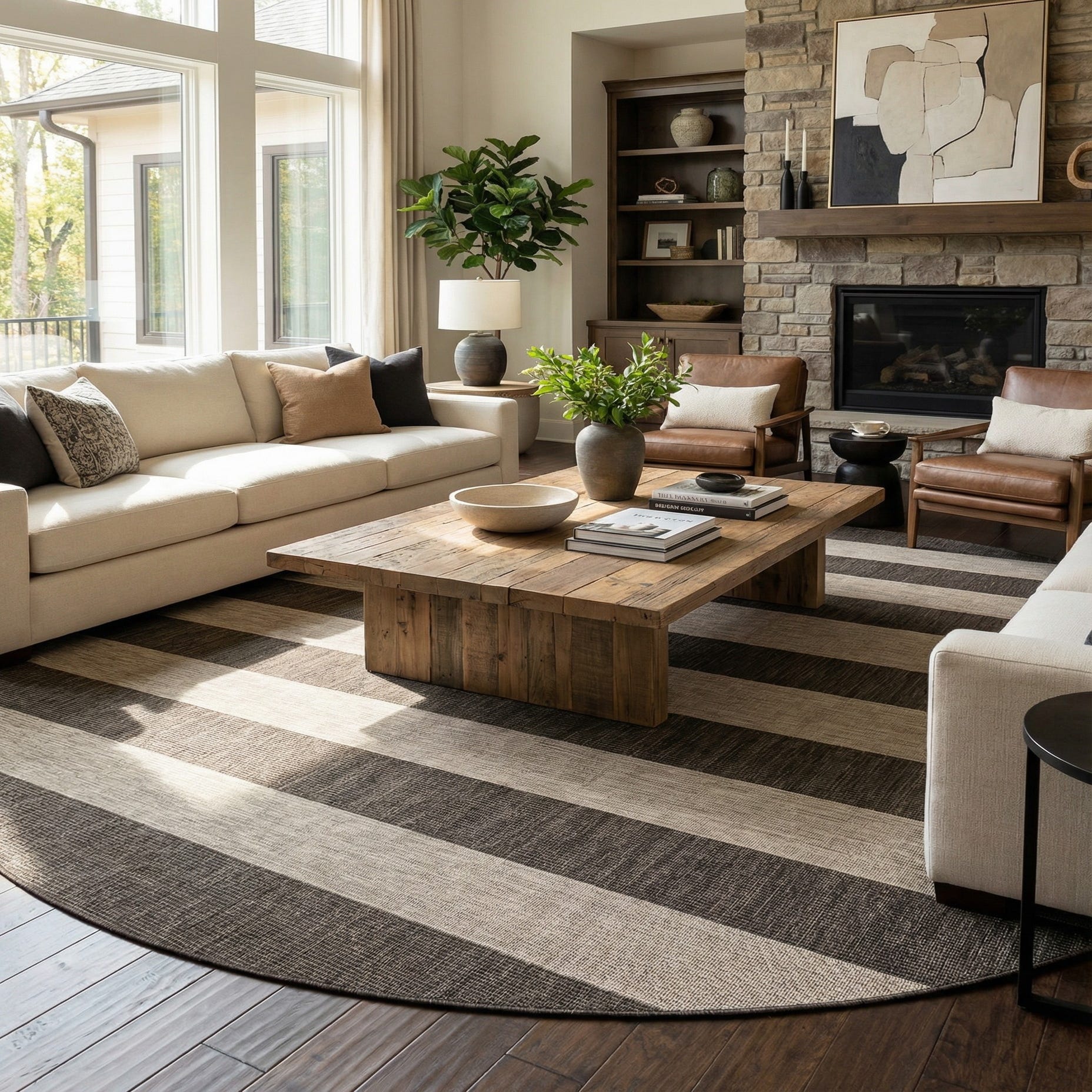 13' x 13' Washable Striped Indoor / Outdoor Round Rug