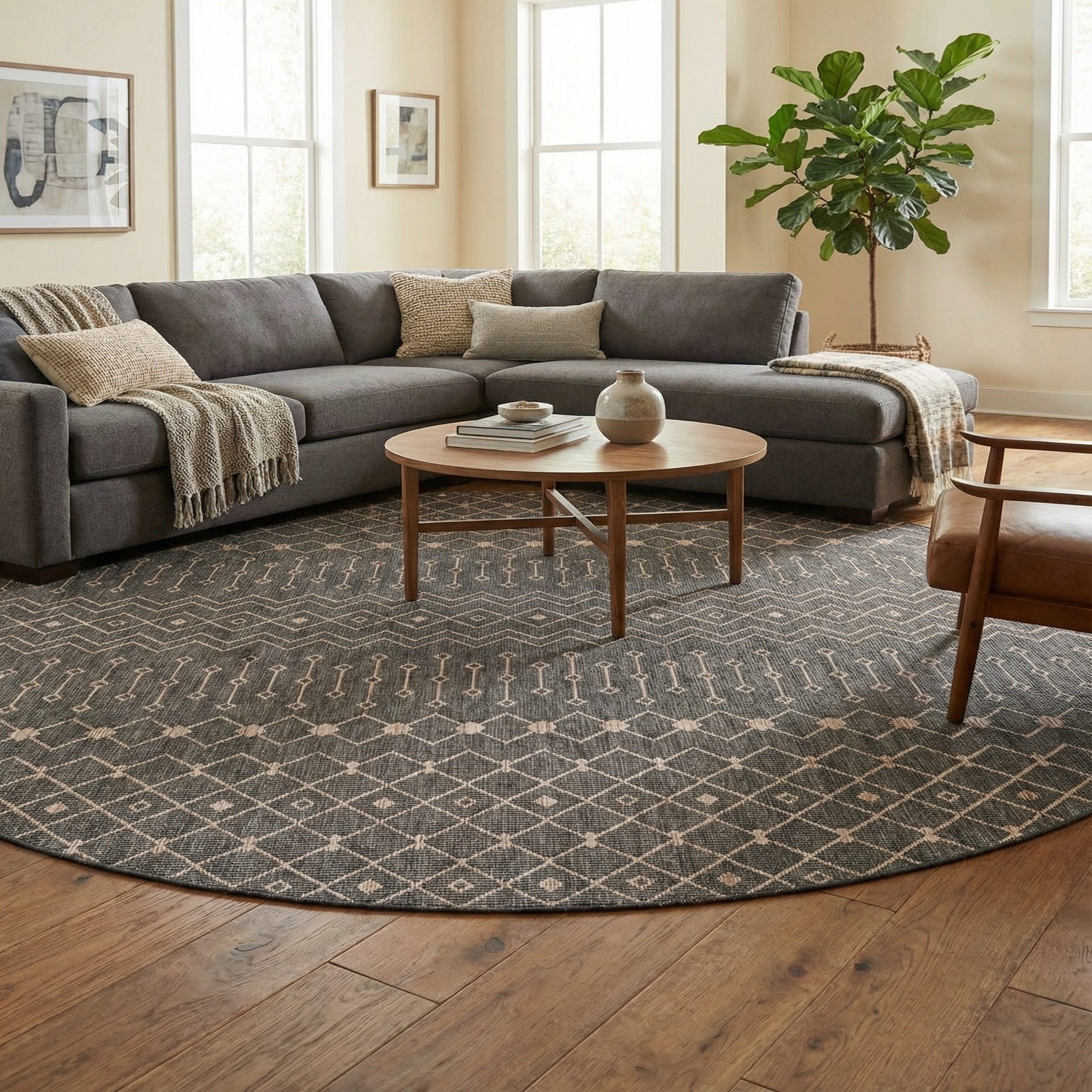 Primary image 13' x 13'  Washable Trellis Indoor / Outdoor Round Rug