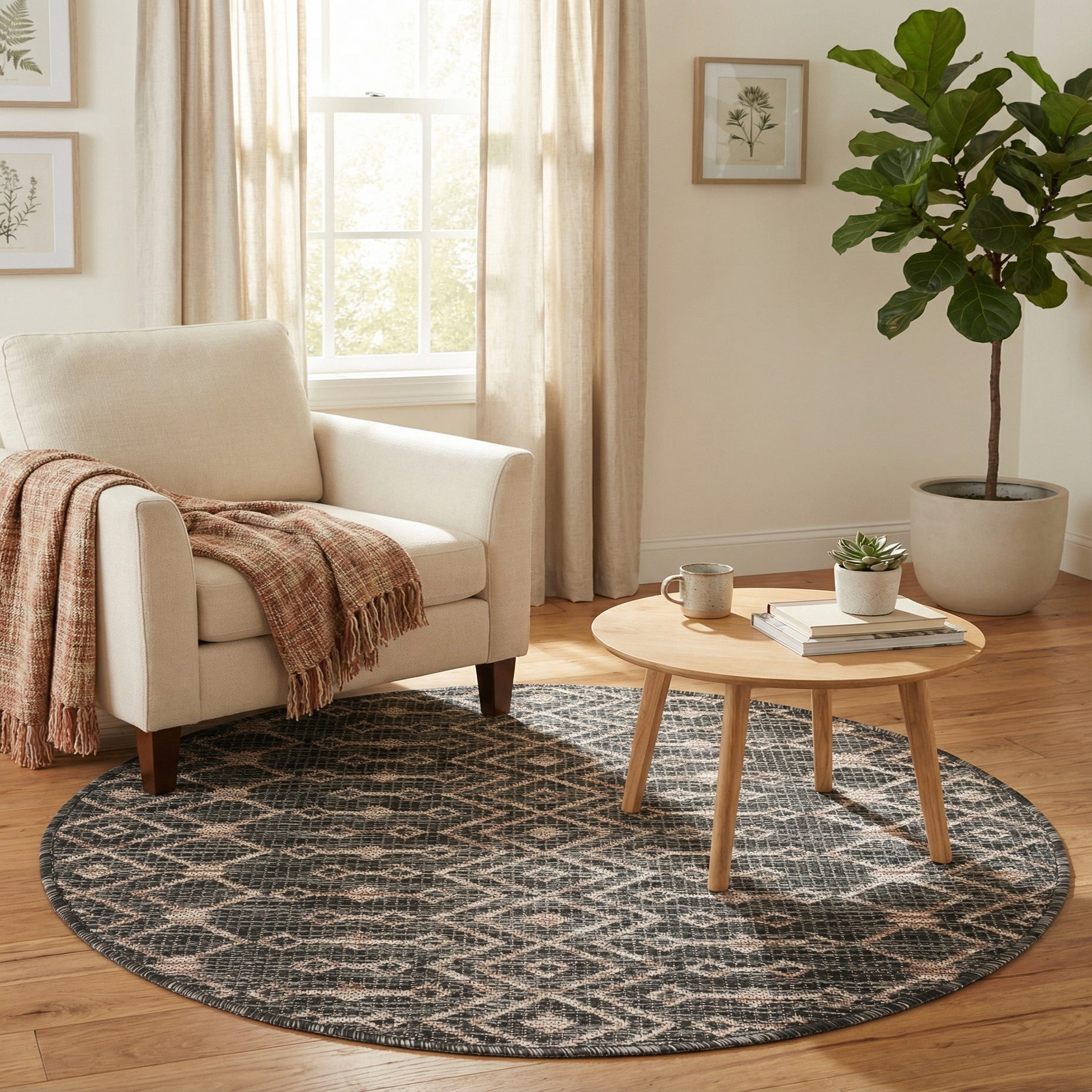 3' x 3' Washable Trellis Indoor / Outdoor Round Rug