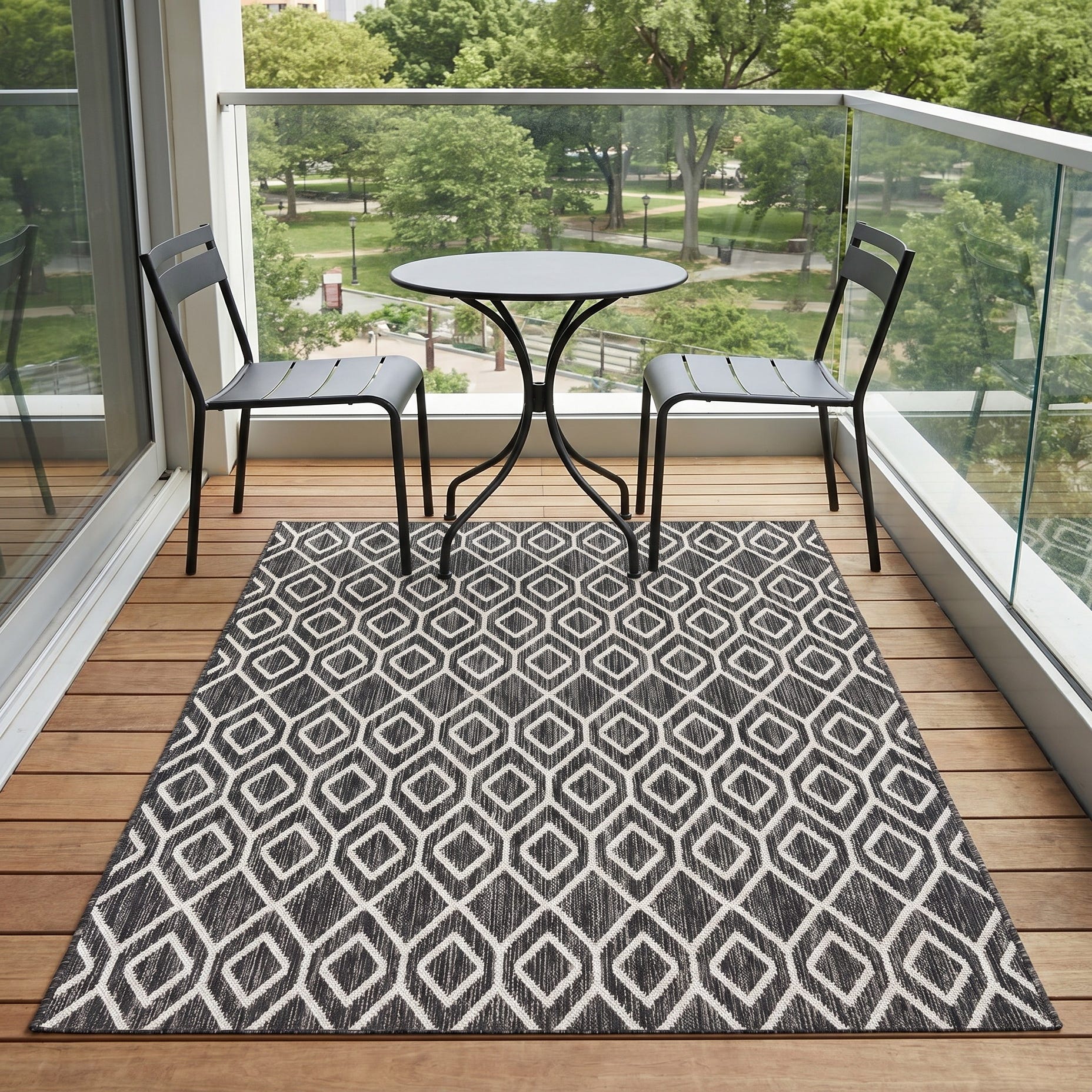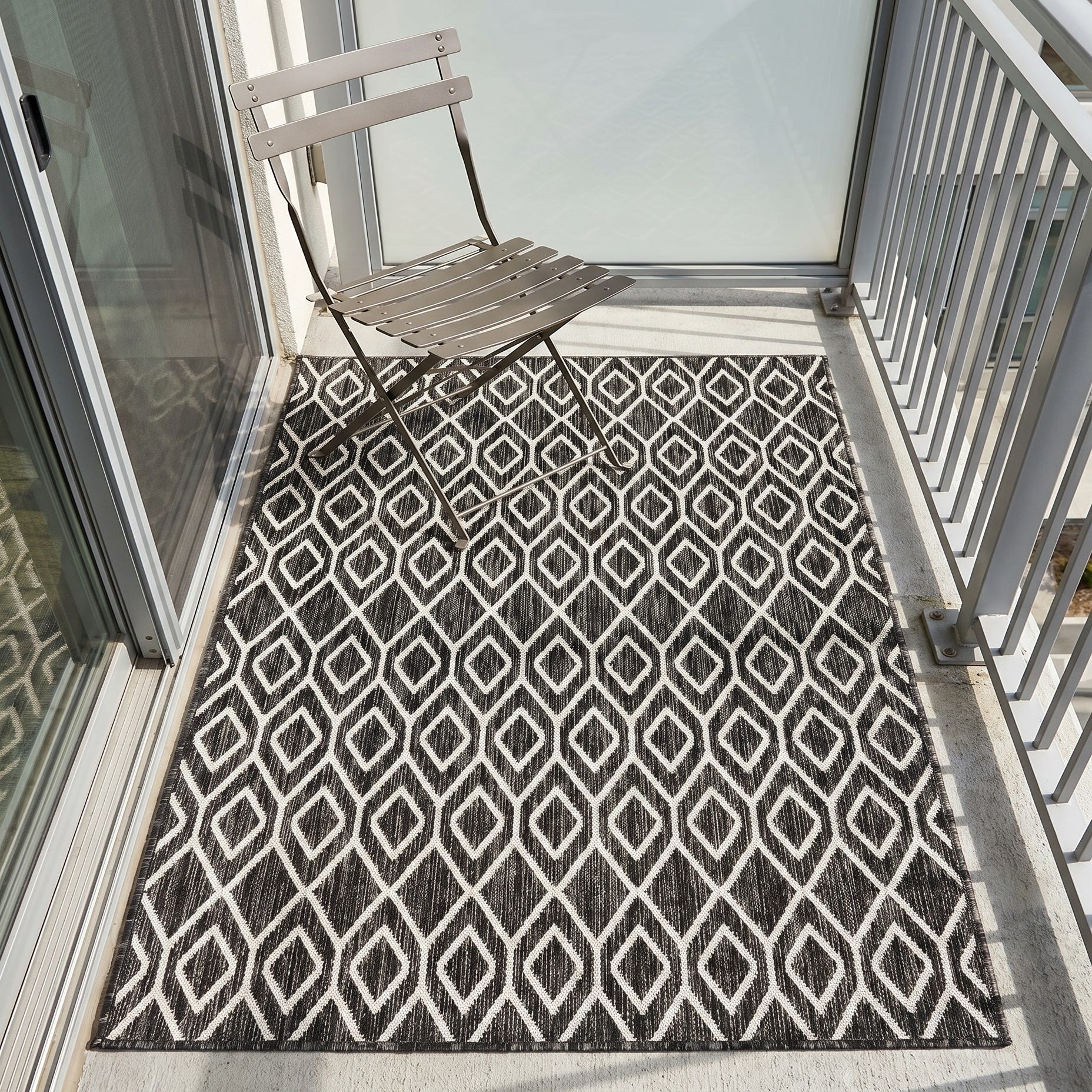 This suited my needs perfectly for a little outdoor breakfast area. The pattern mimics my garden lattice pattern. These photos were taken at night but it shows up well. Dries out quickly after rain