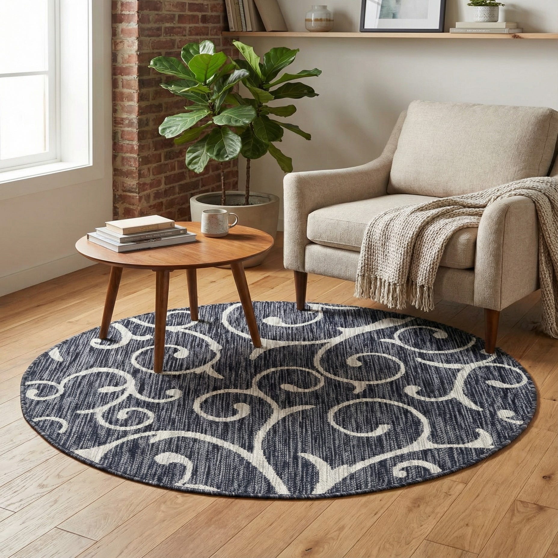 4' x 4' Washable Botanical Indoor / Outdoor Round Rug
