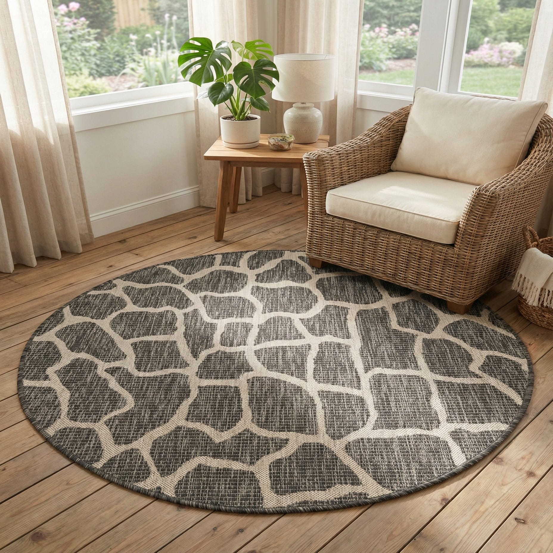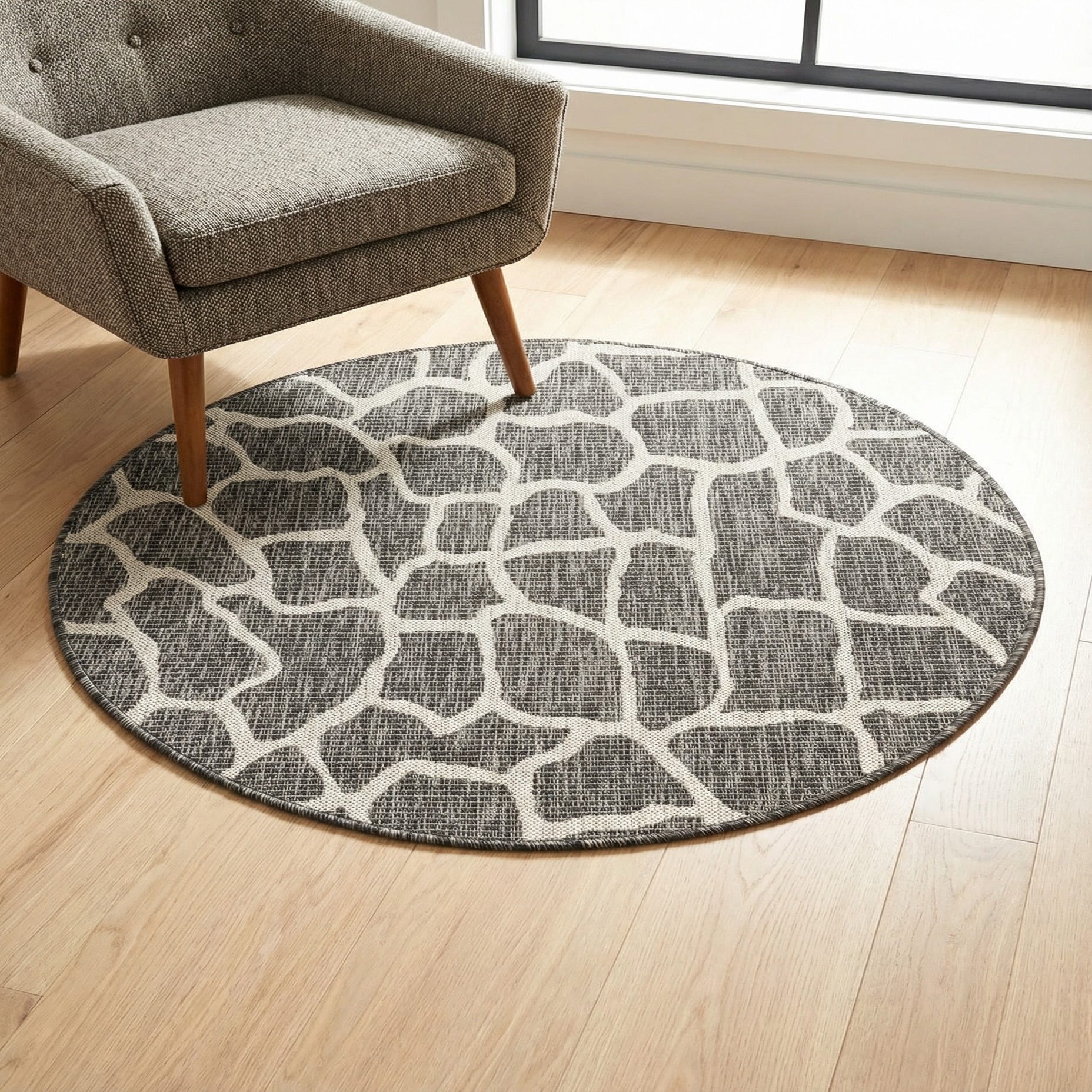 4' x 4' Washable Safari Indoor / Outdoor Round Rug