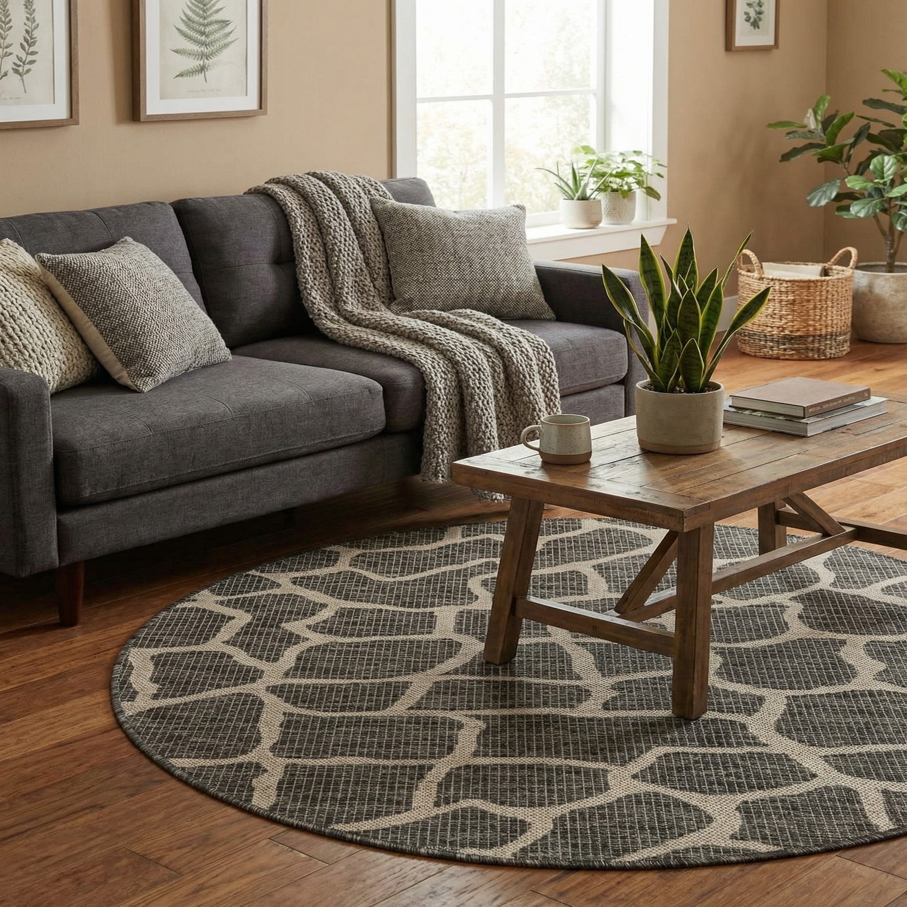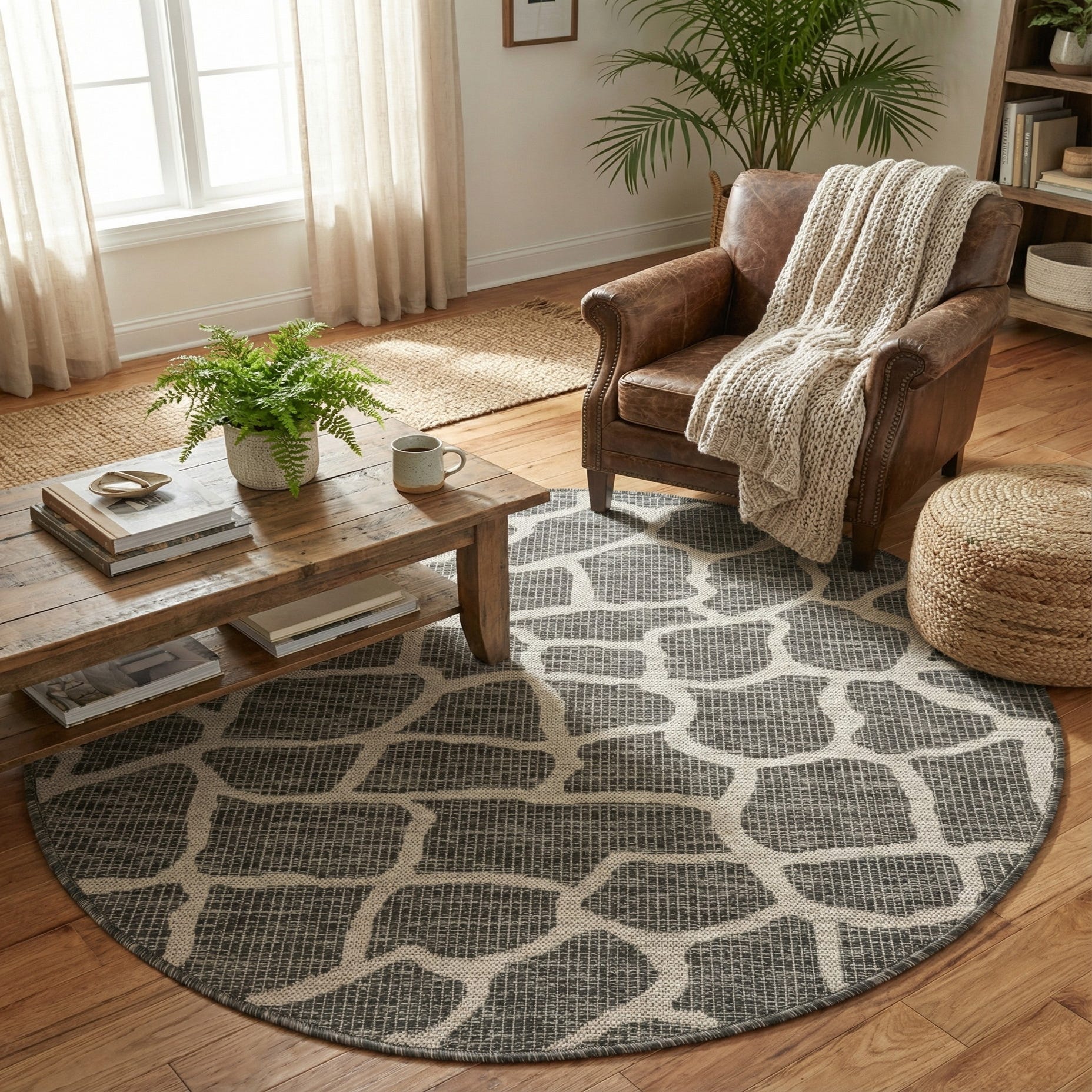 4' x 4' Washable Safari Indoor / Outdoor Round Rug