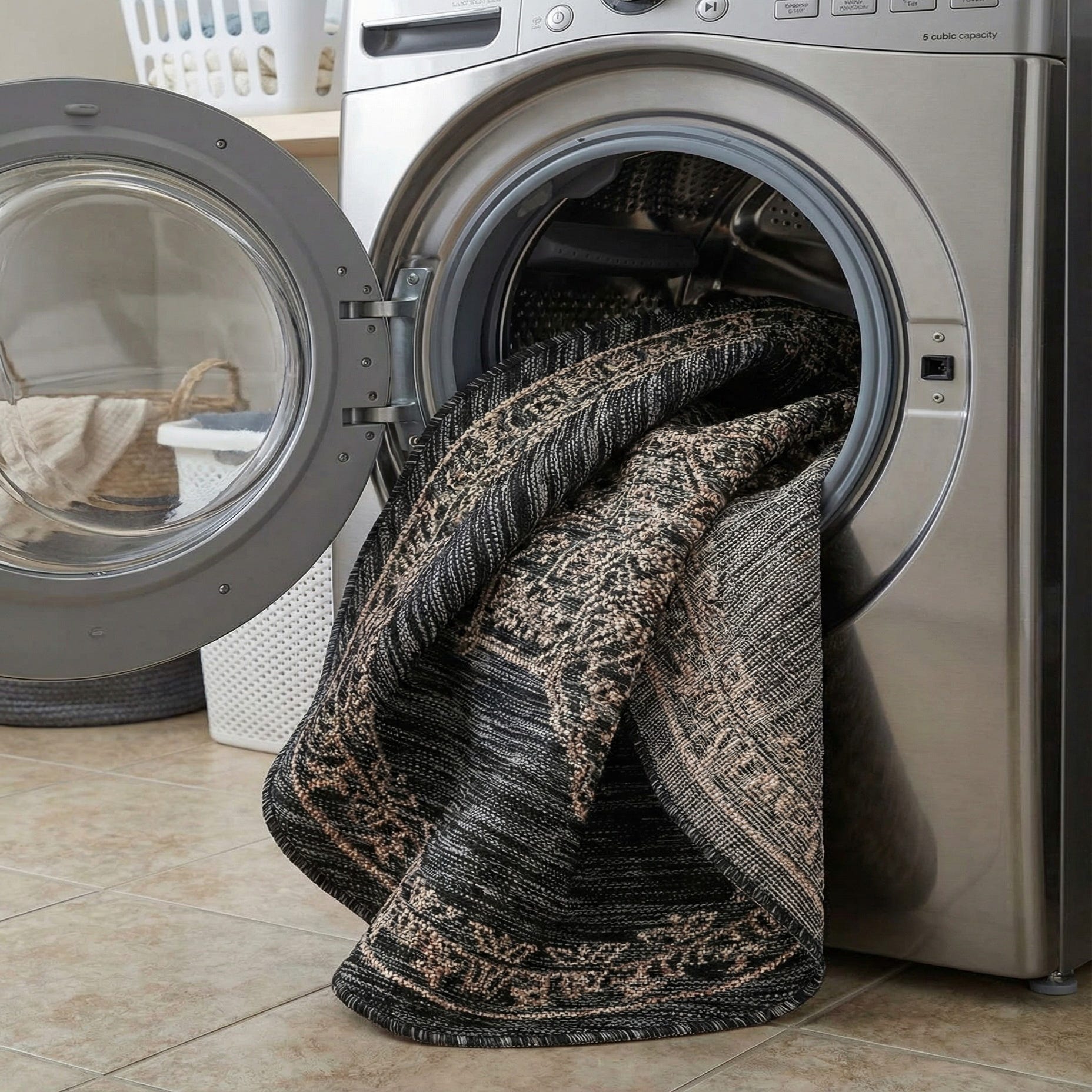 4' x 4' Washable Traditional Indoor / Outdoor Round Rug