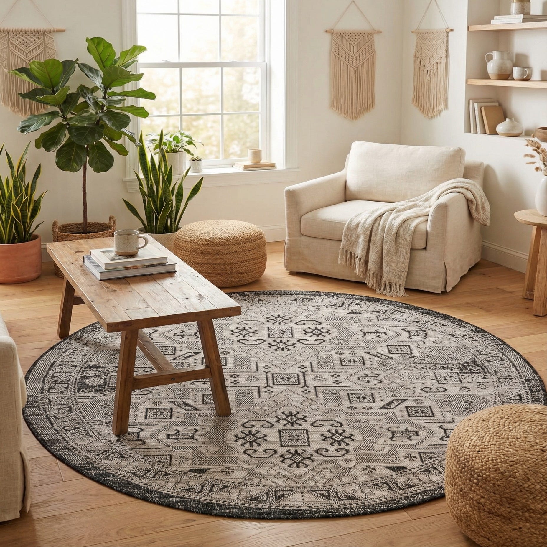 5' 3 x 5' 3 Washable Aztec Indoor / Outdoor Round Rug
