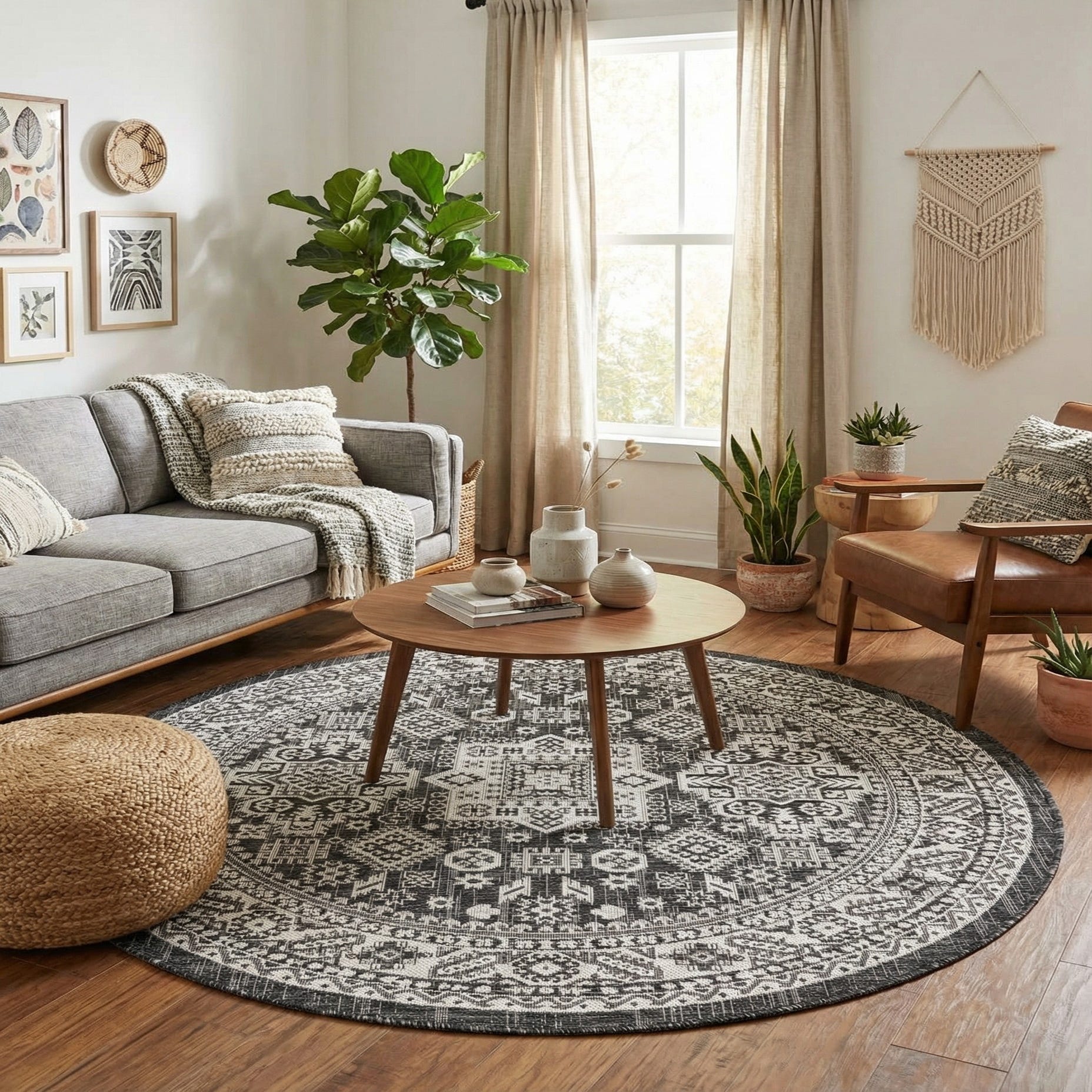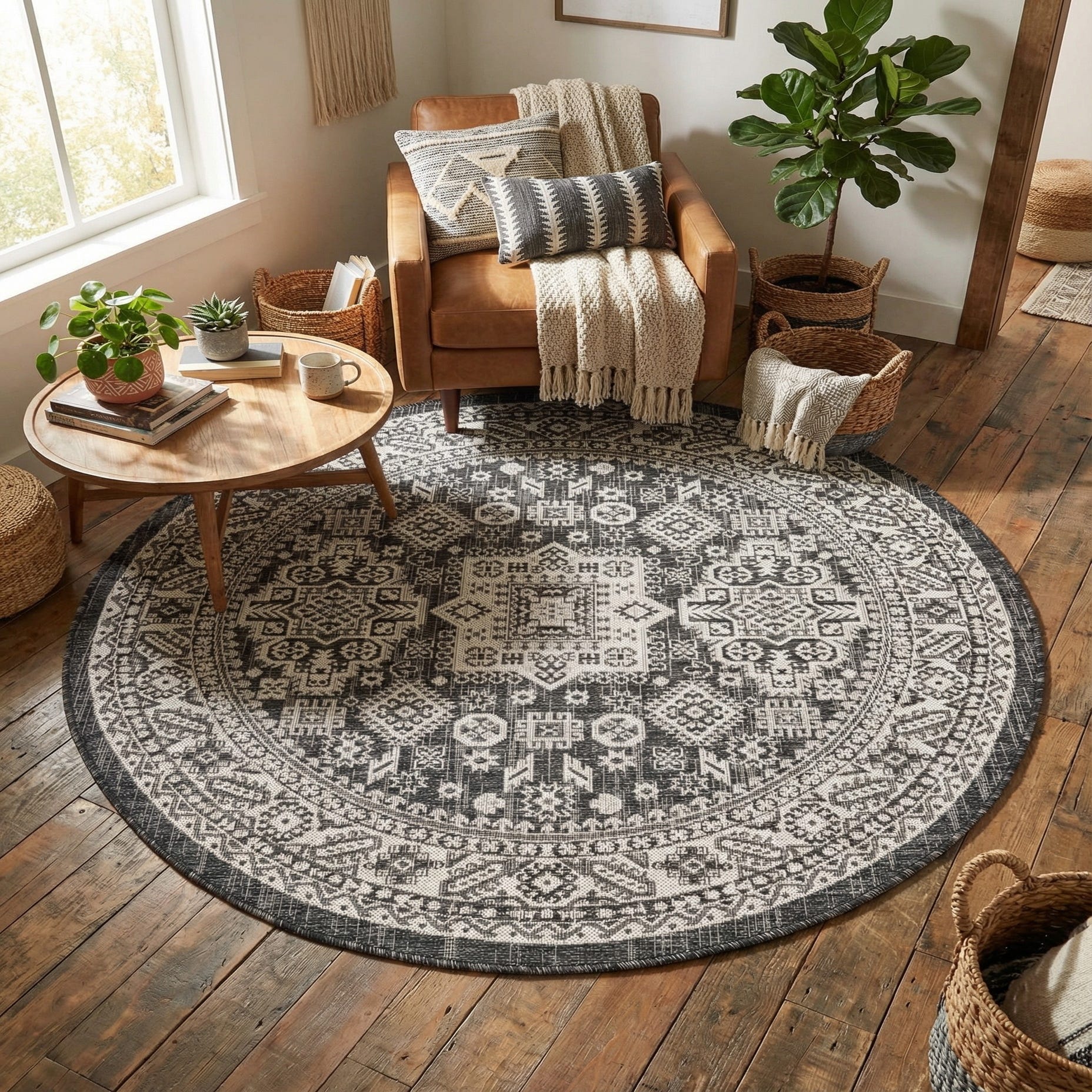 5' 3 x 5' 3 Washable Aztec Indoor / Outdoor Round Rug