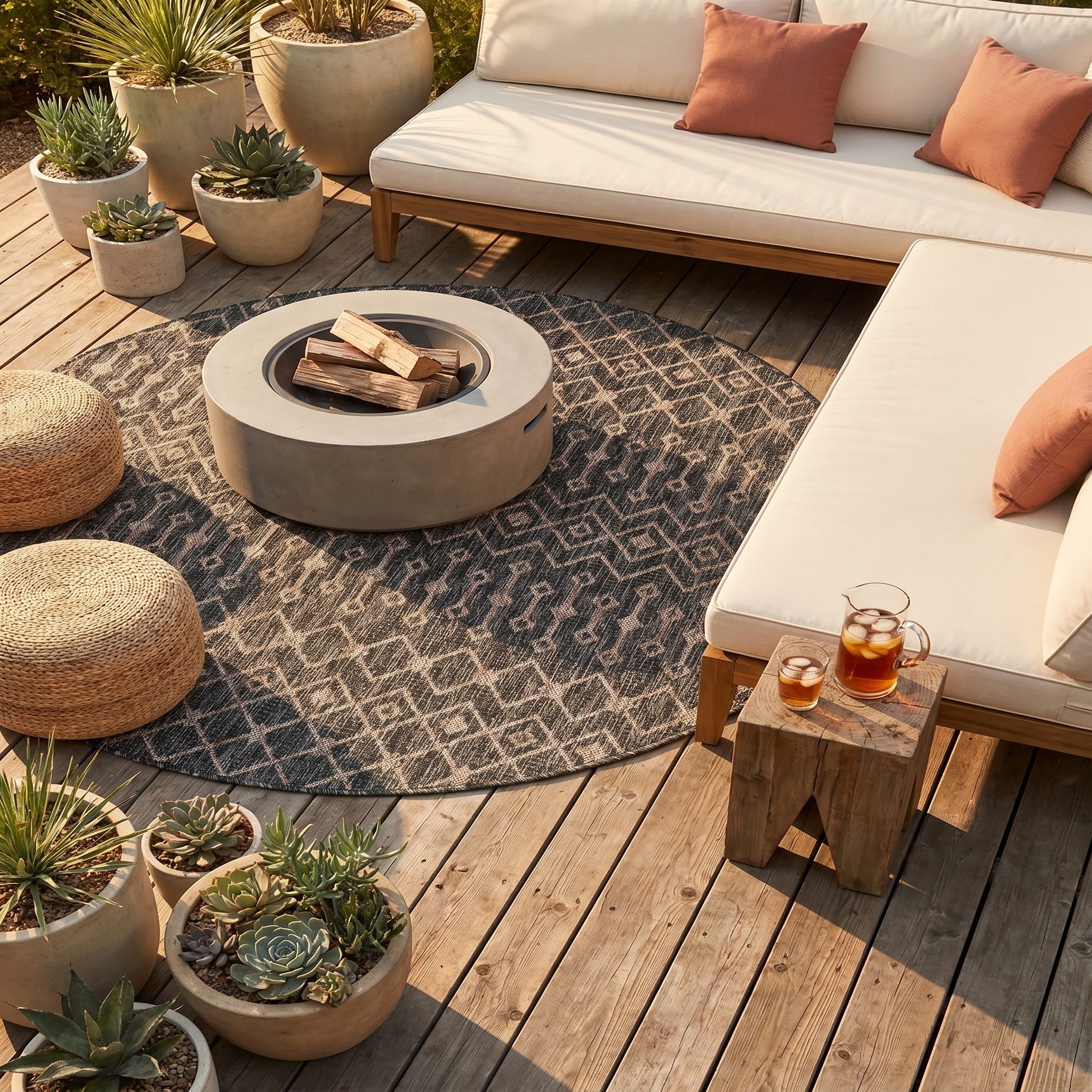 5' 3 x 5' 3 Easy-Clean Trellis Indoor / Outdoor Round Rug