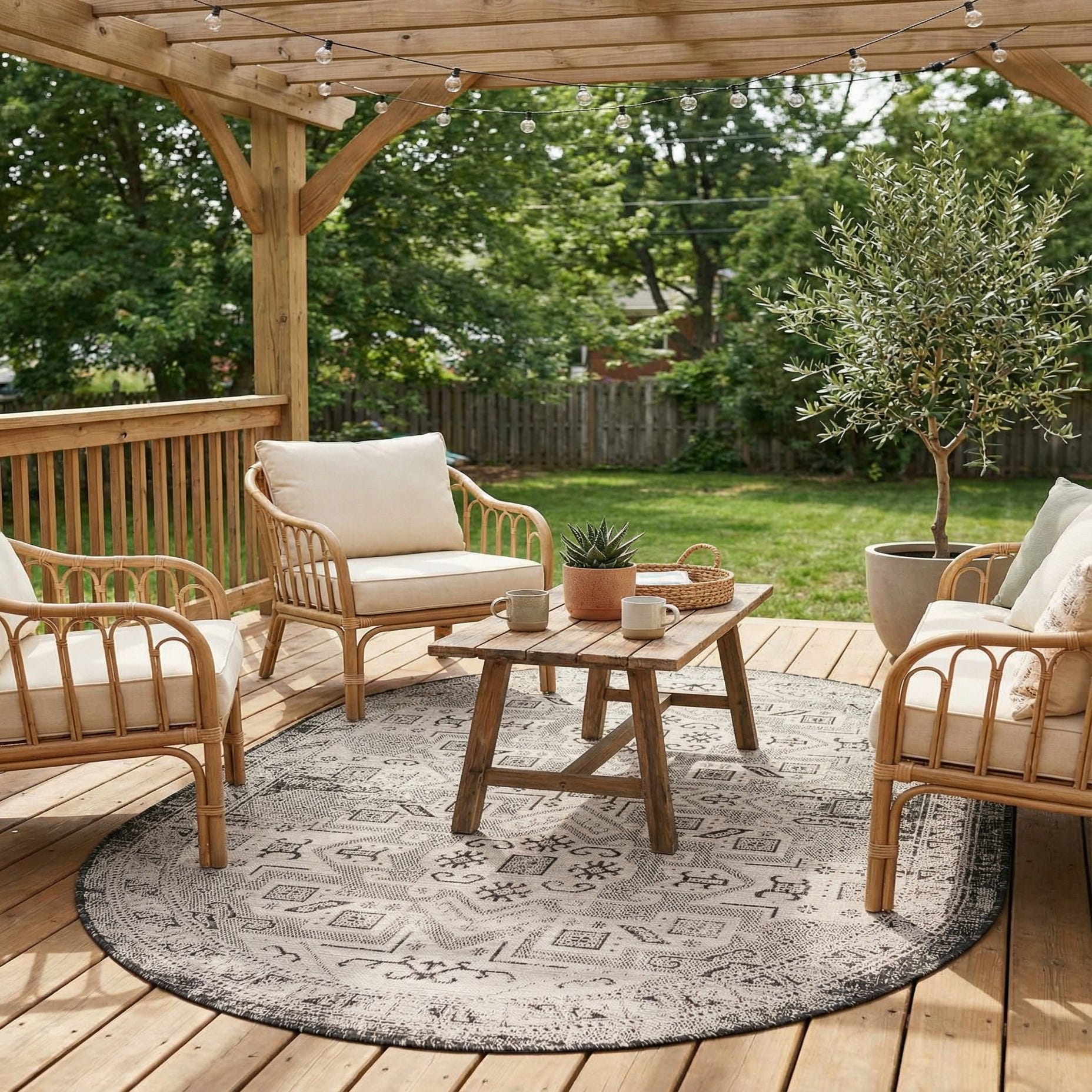 5' 3 x 8' Washable Aztec Indoor / Outdoor Oval Rug