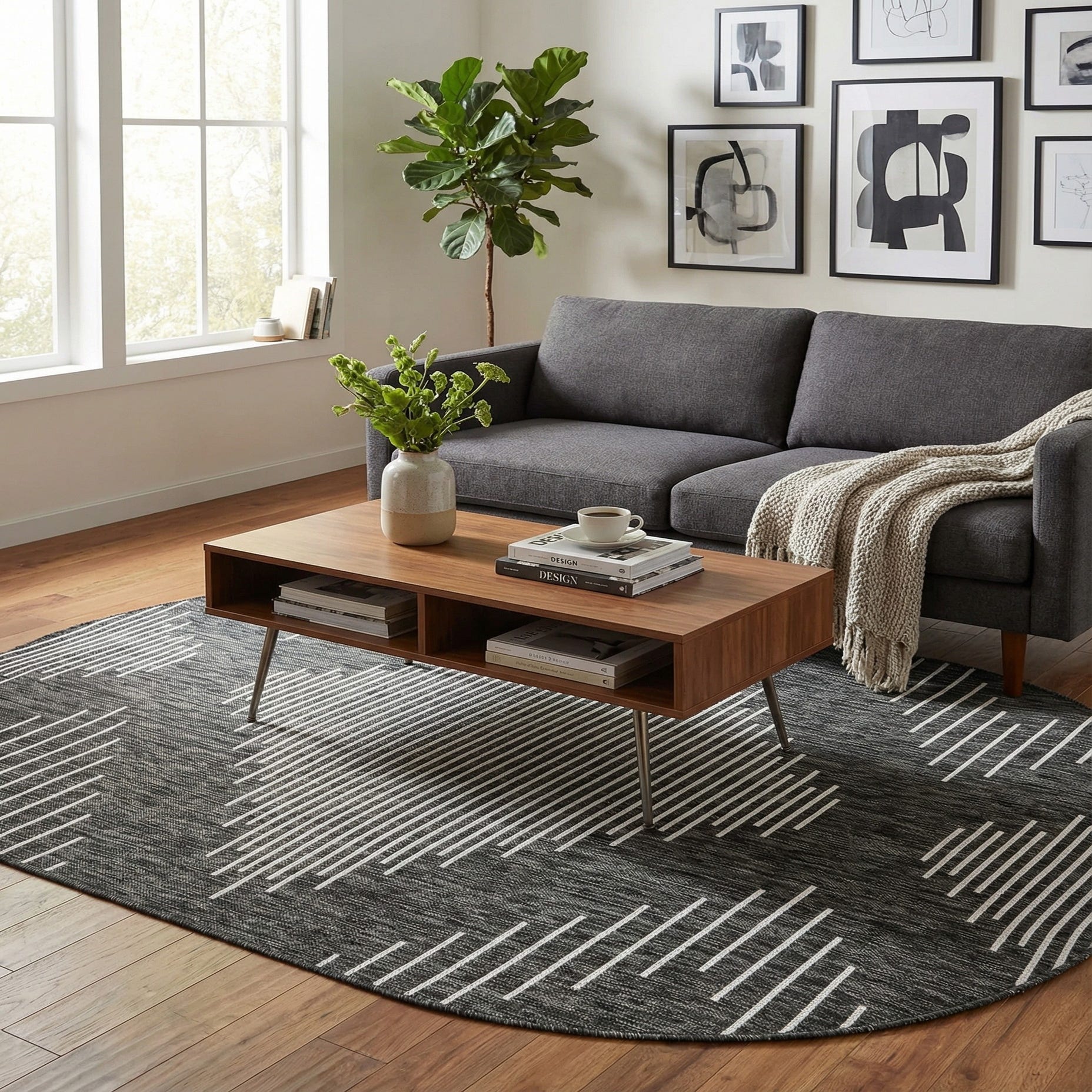 5' 3 x 8' Washable Modern Indoor / Outdoor Oval Rug