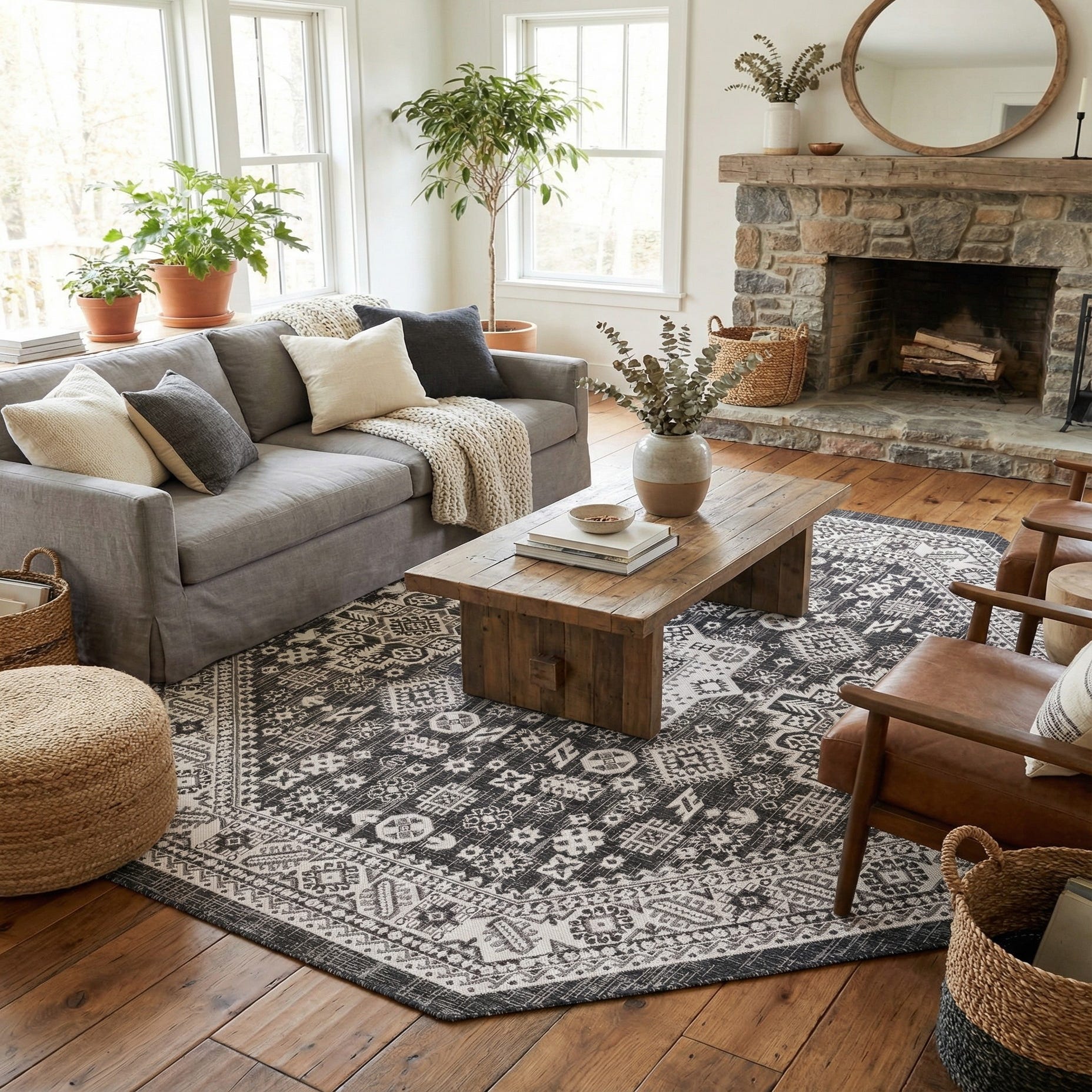 7' 10 x 7' 10 Washable Aztec Indoor / Outdoor Octagon Rug