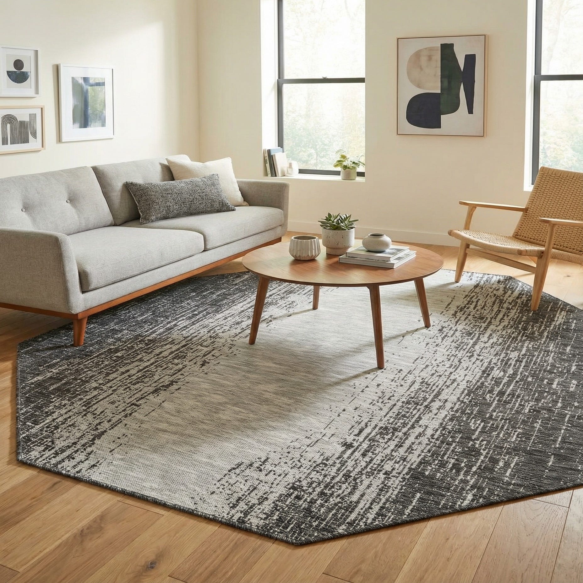 7' 10 x 7' 10 Washable Modern Indoor / Outdoor Octagon Rug