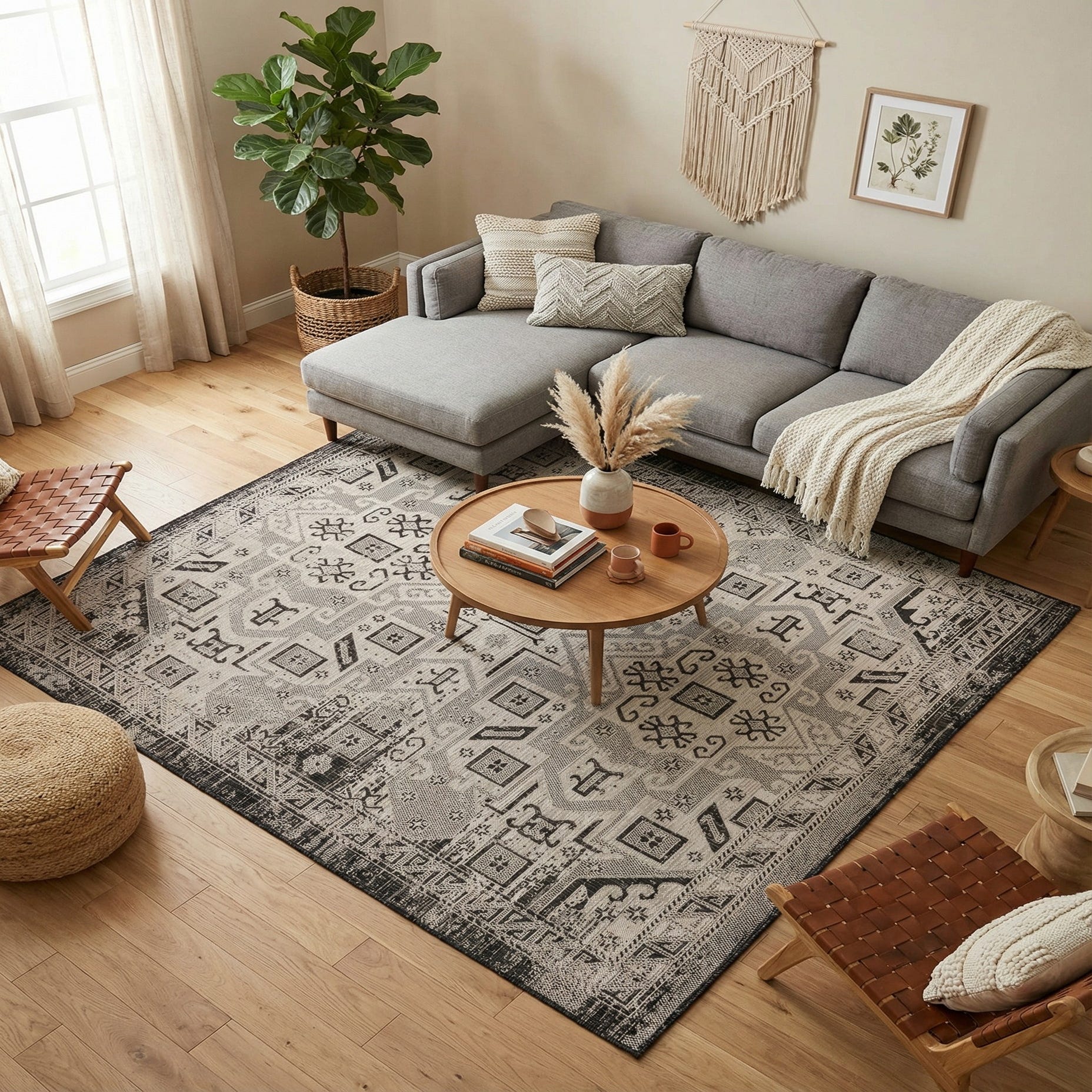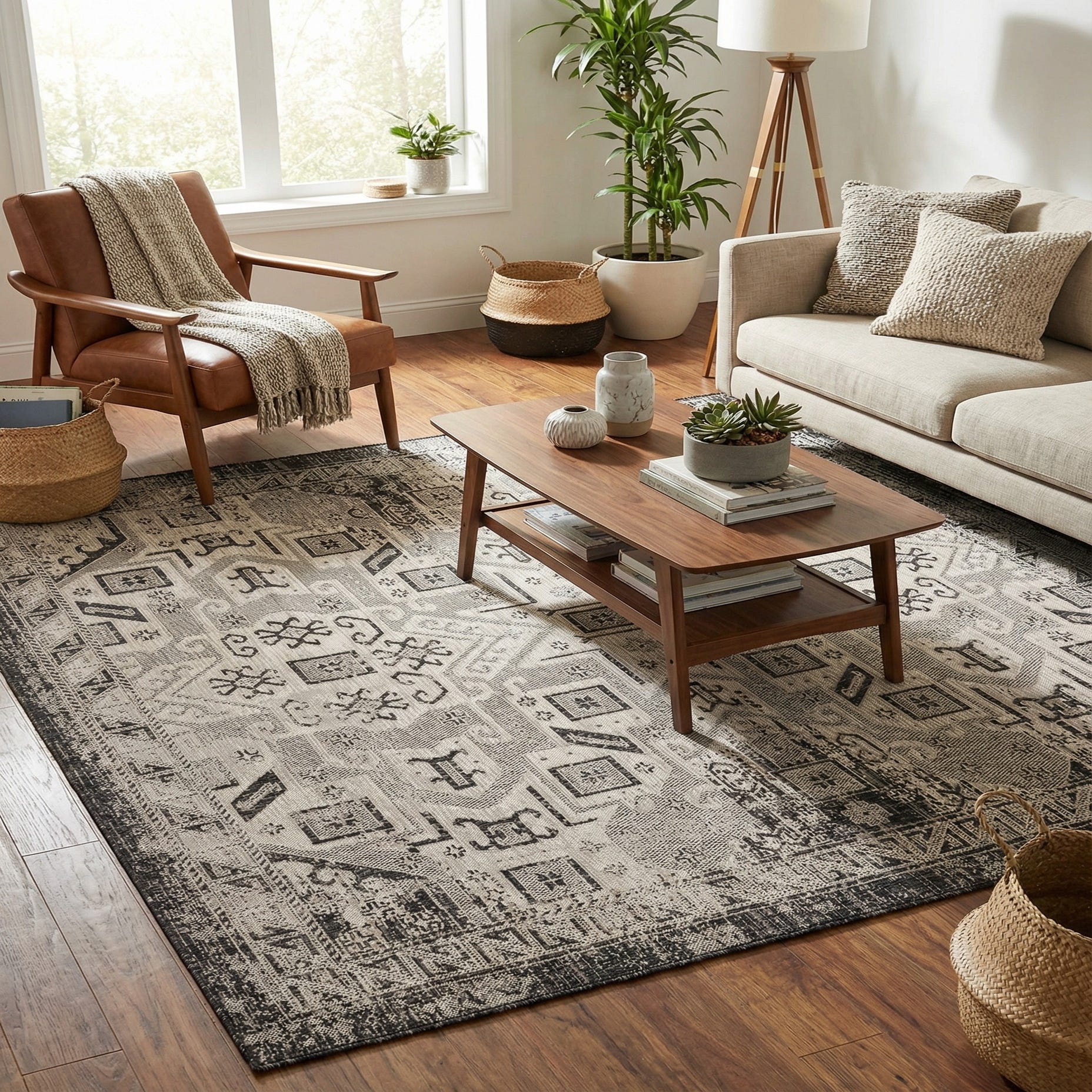 Primary color is Charcoal Gray. Colors in this rug include: Charcoal Gray, Ivory.