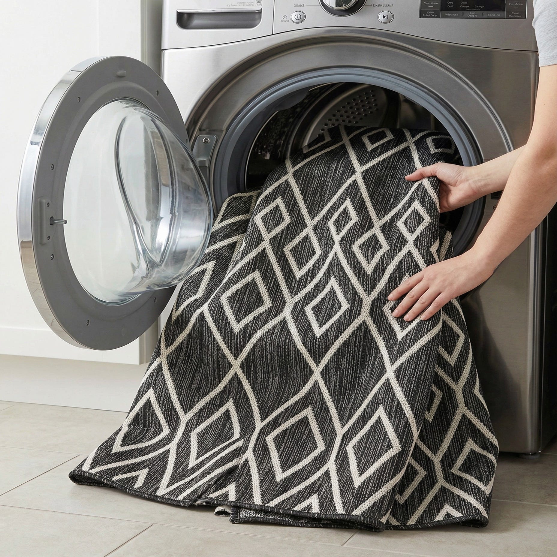 Primary color is Charcoal Gray. Colors in this rug include: Charcoal Gray, Ivory.