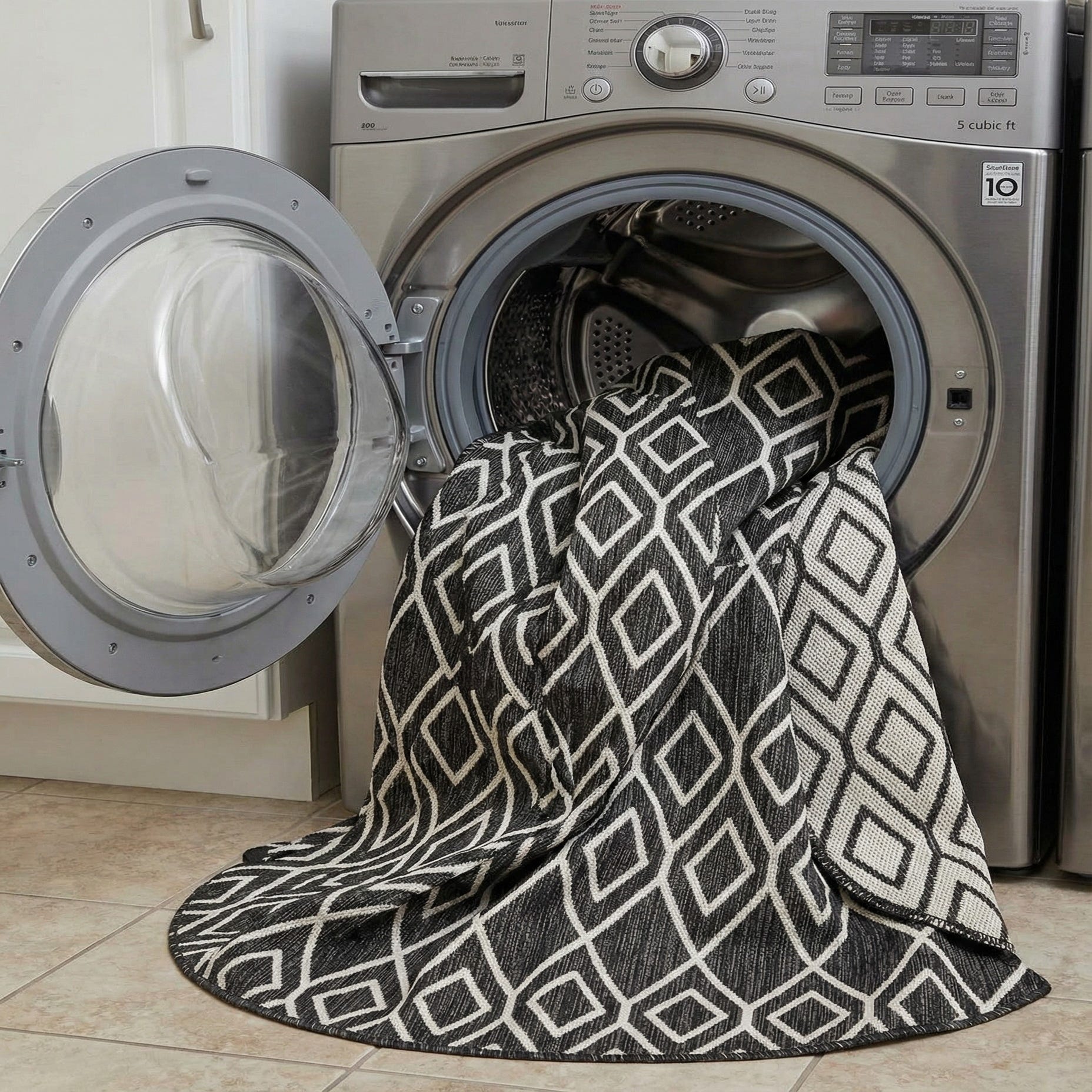 Primary color is Charcoal Gray. Colors in this rug include: Charcoal Gray, Ivory.