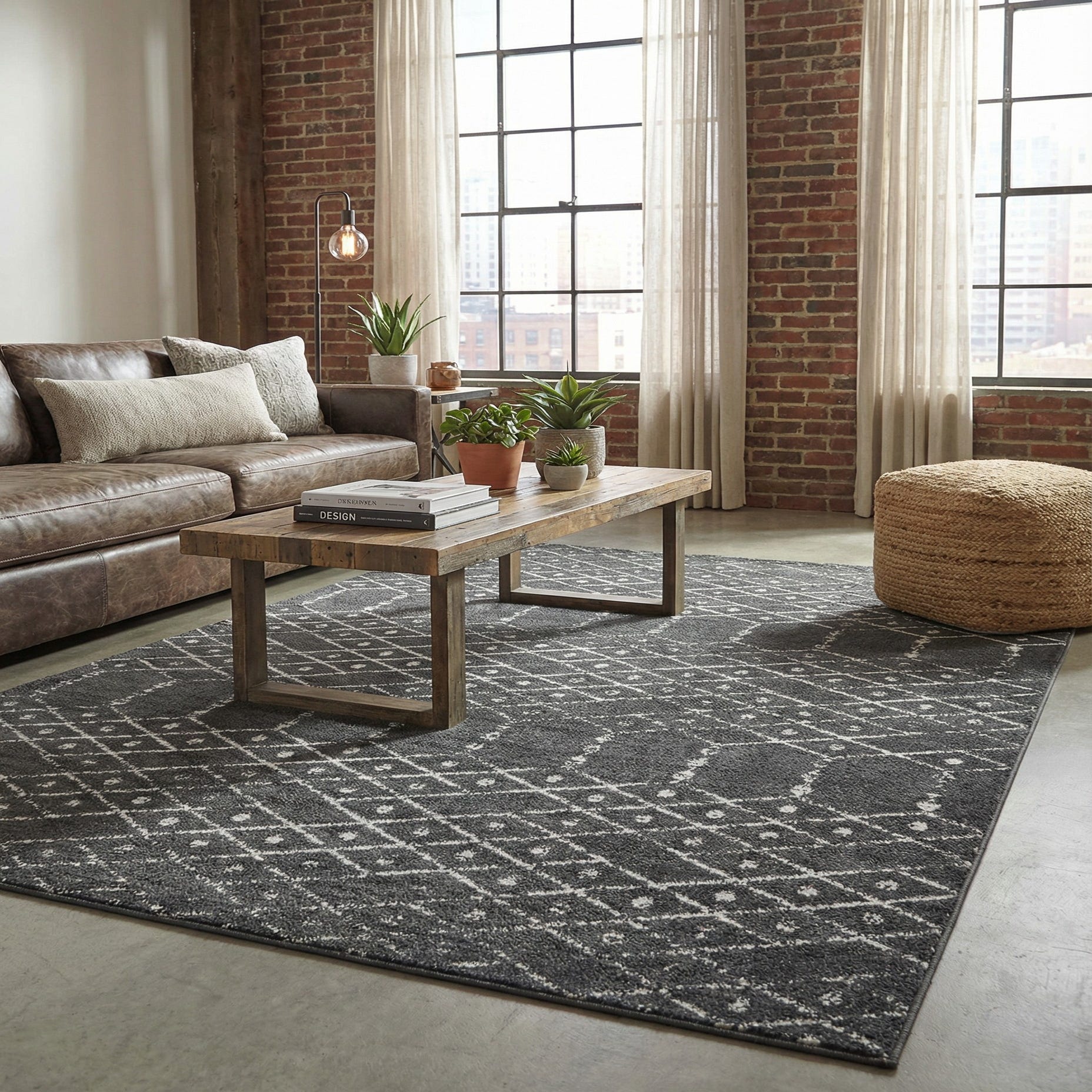 Primary color is Charcoal Gray. Colors in this rug include: Charcoal Gray, Ivory.
